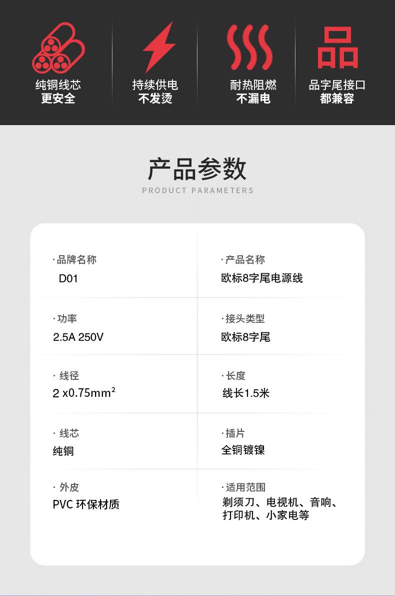| | | | | | Cable de alimentación personalizado con certificación 3C, estándar nacional, sufijo de producto, host de computadora, olla arrocera, hervidor, enchufe, línea de suministro de energía para el hogar. | | | | 5,80 ¥ Gran oferta | | 27035 unidades vendidas | | | | | | | | | | Cable de alimentación europeo personalizado con enchufe de 2 núcleos con sufijo en forma de 8, estándar europeo, para luz de estación de TV, audio, dos orificios con sufijo en forma de 8, VDE | | | | ¥3.60 Gran oferta | | 15240 unidades vendidas | | | | | | | | | | Cable de alimentación estándar americano con dos enchufes planos y orificios, cable de alimentación de dos núcleos con cola en forma de ocho estándar americano, cable de cola en forma de ocho con dos enchufes americanos | | | | 4,20 ¥ Gran oferta | | 27997 unidades vendidas | | | | | |
