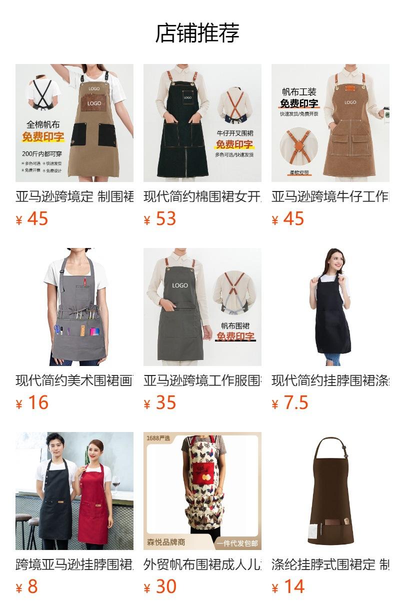 Delantal de poliéster y algodón de Amazon transfronterizo para restaurante, tienda de té con leche, panadería, cafetería, barbacoa, mono con logotipo impreso