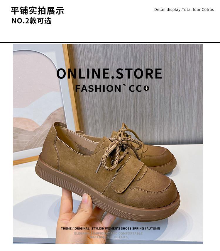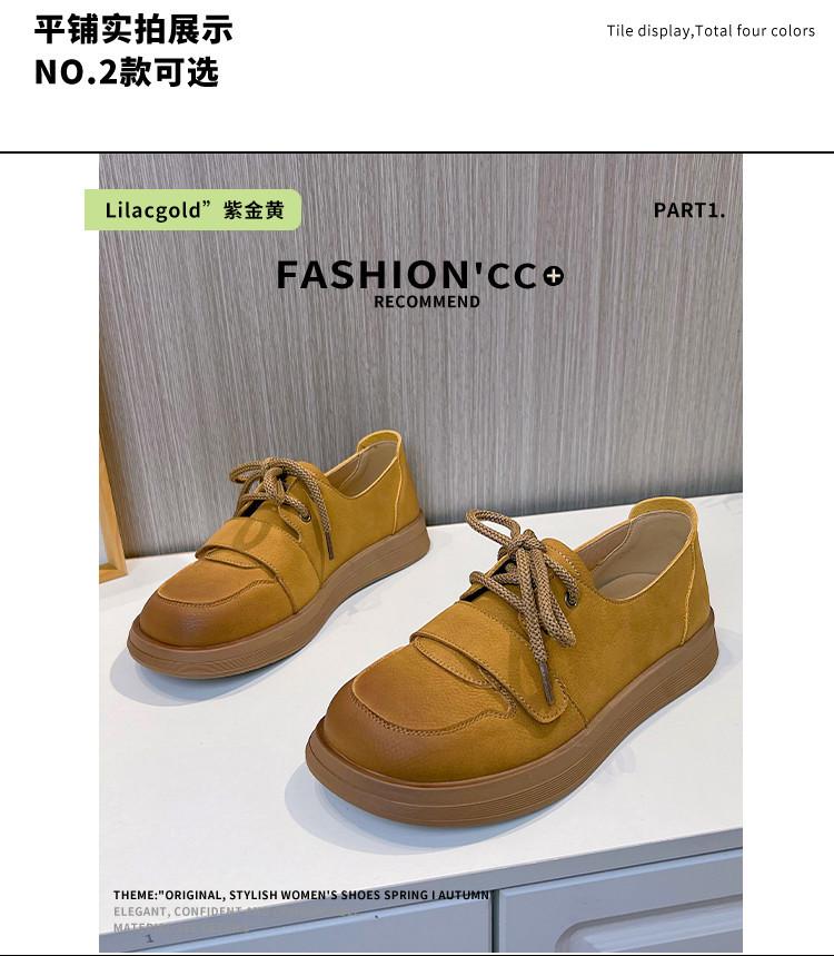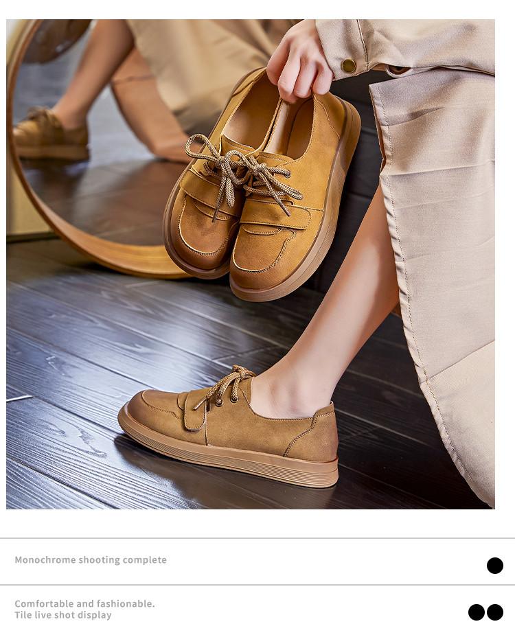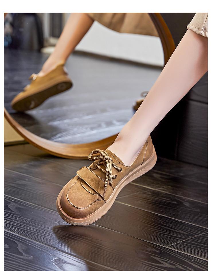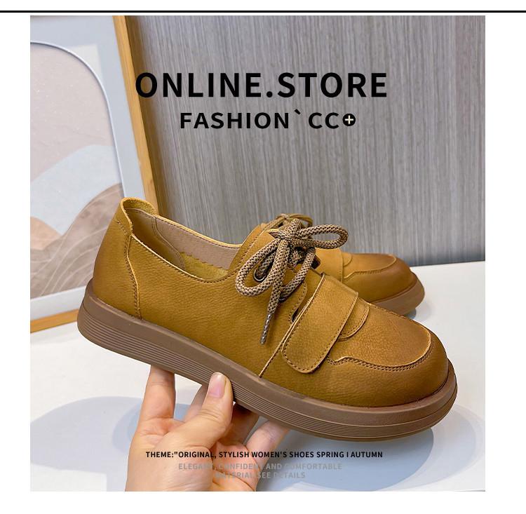 Zapatos de Mujer de Cuero Genuino 2026 Primavera Nuevo Retro Bajos Zapatos Individuales Zapatos de Cuero Pequeños con Velcro para Mujer Zapatos Casuales Versátiles para Mujer