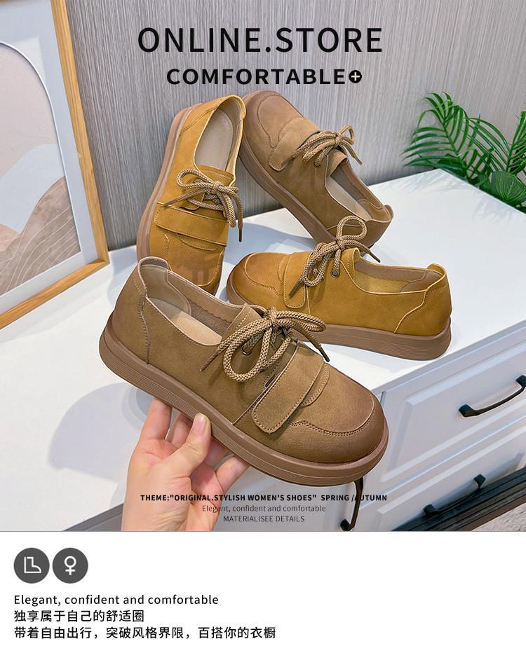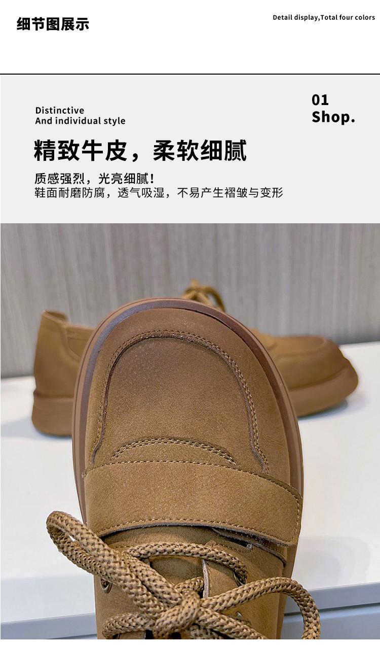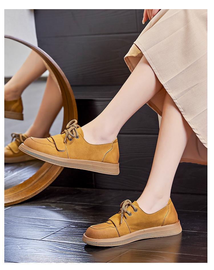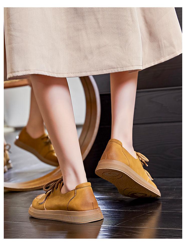Zapatos de Mujer de Cuero Genuino 2026 Primavera Nuevo Retro Bajos Zapatos Individuales Zapatos de Cuero Pequeños con Velcro para Mujer Zapatos Casuales Versátiles para Mujer