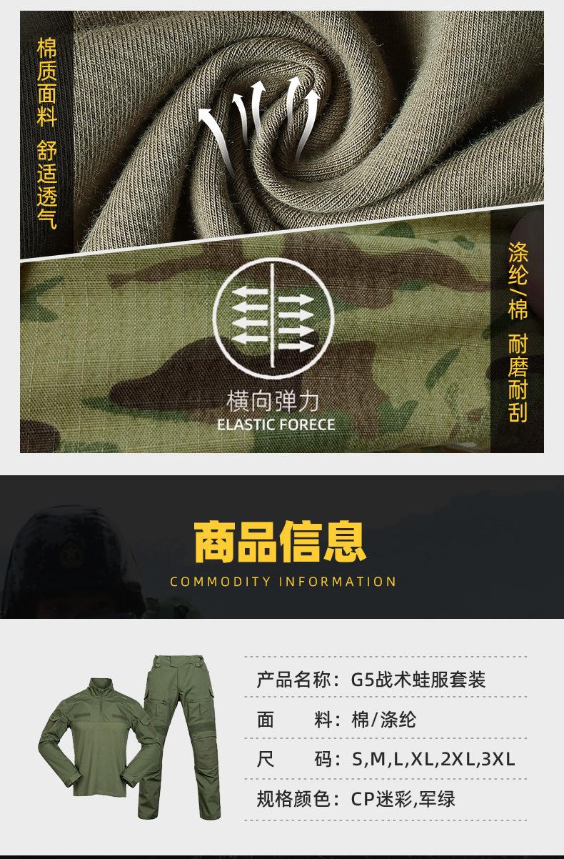 Nuevo Traje G5 Rana Primavera y Otoño 2024 Verde Militar Manga Larga Pantalón Táctico Traje Elástico Transpirable Camuflaje Exterior Traje de Entrenamiento