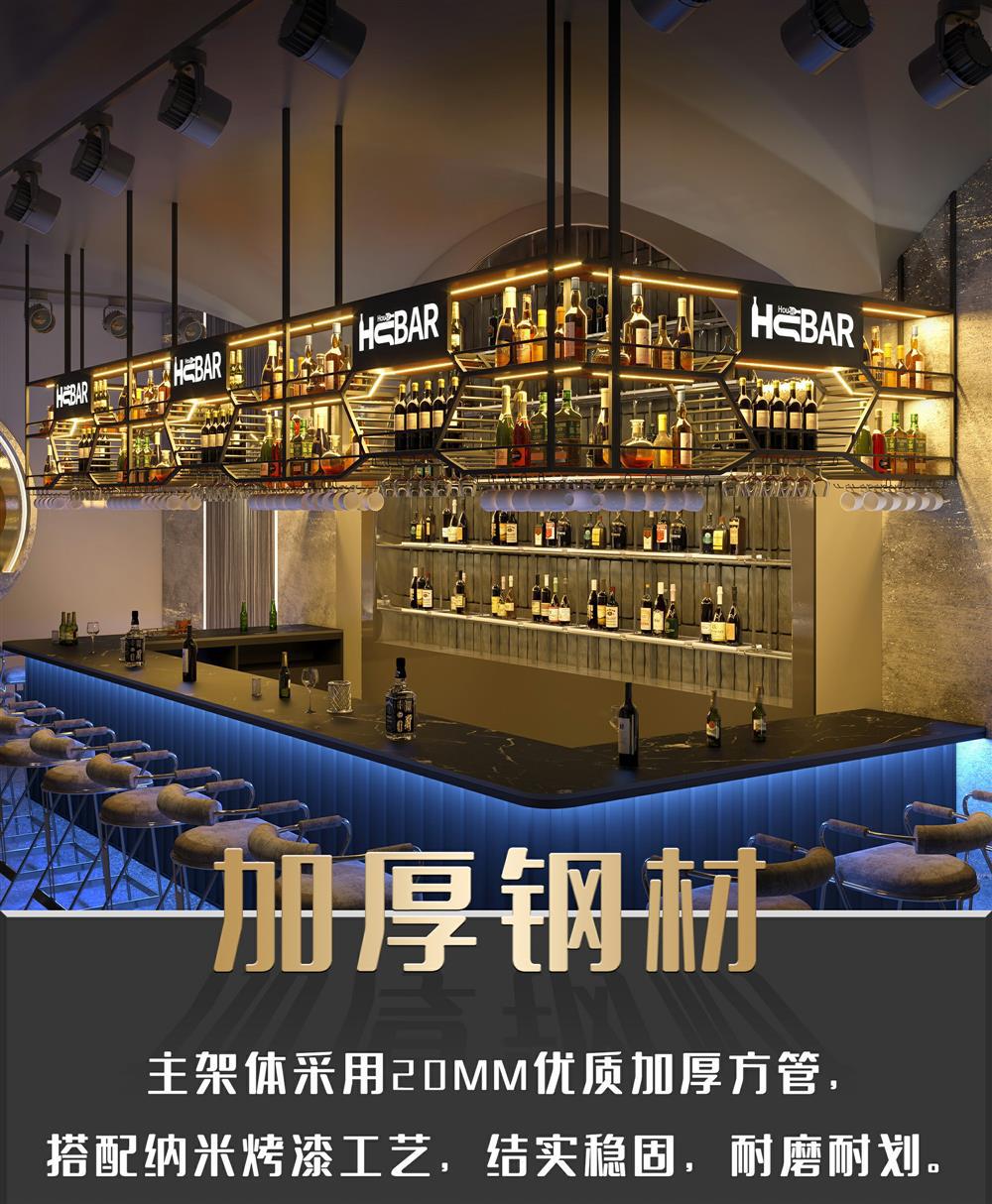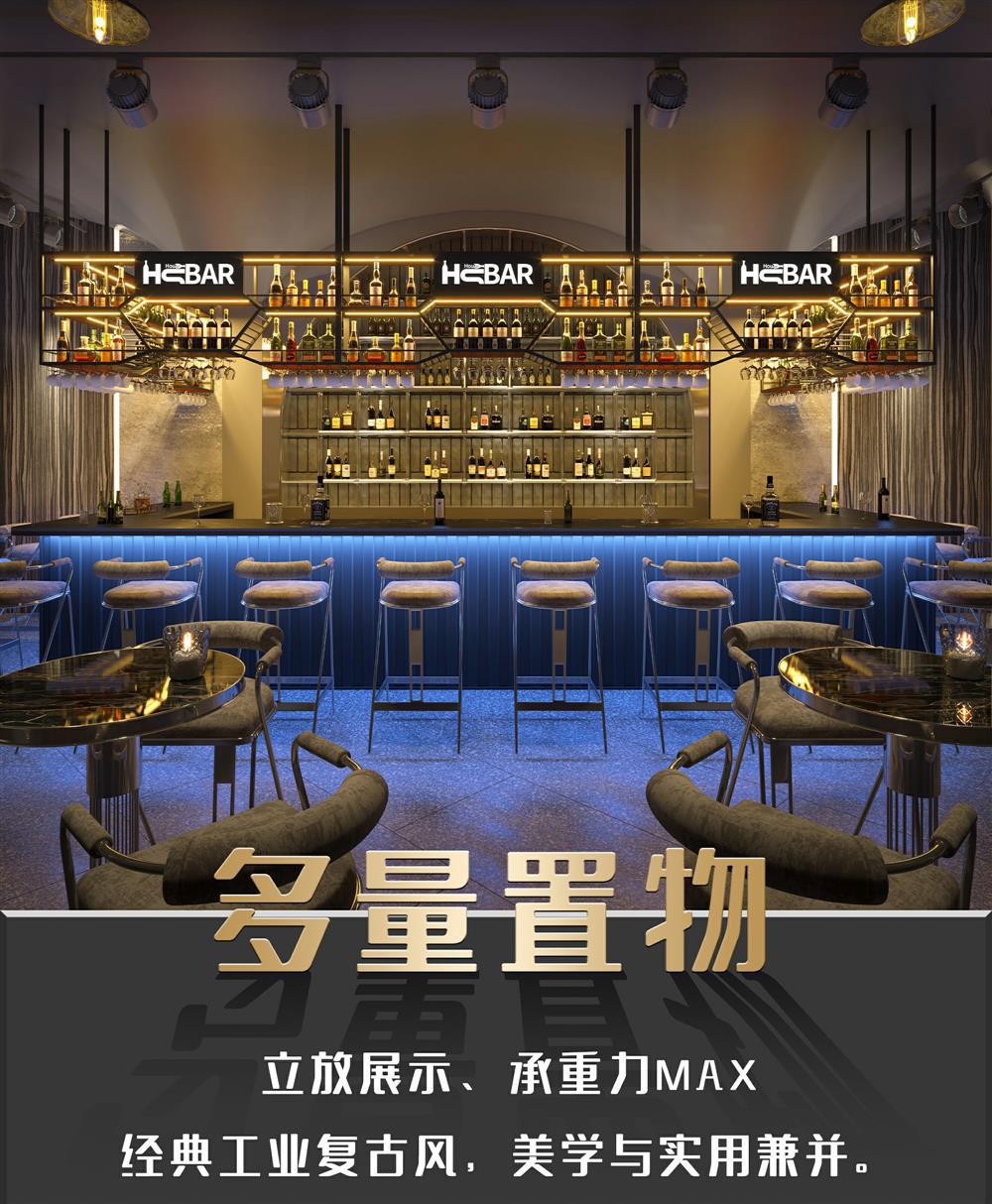 Percha de barra para colgar vino tinto, estante colgante para restaurante, estante de almacenamiento de hierro estilo industrial, armario colgante invertido