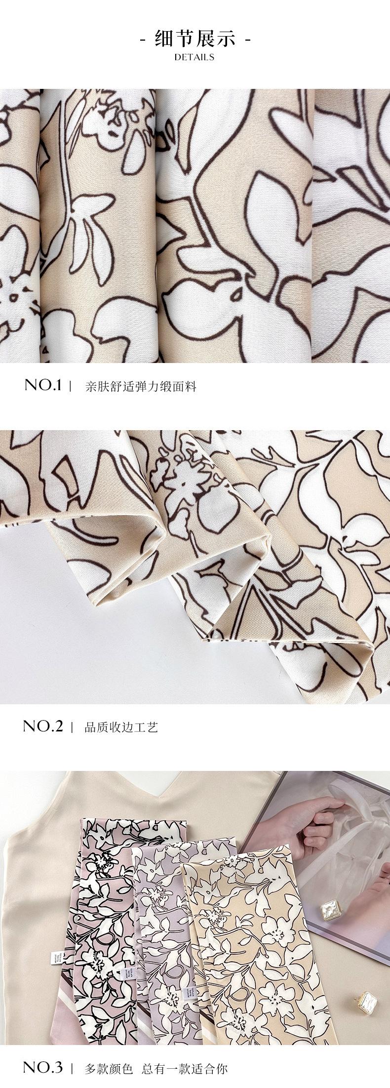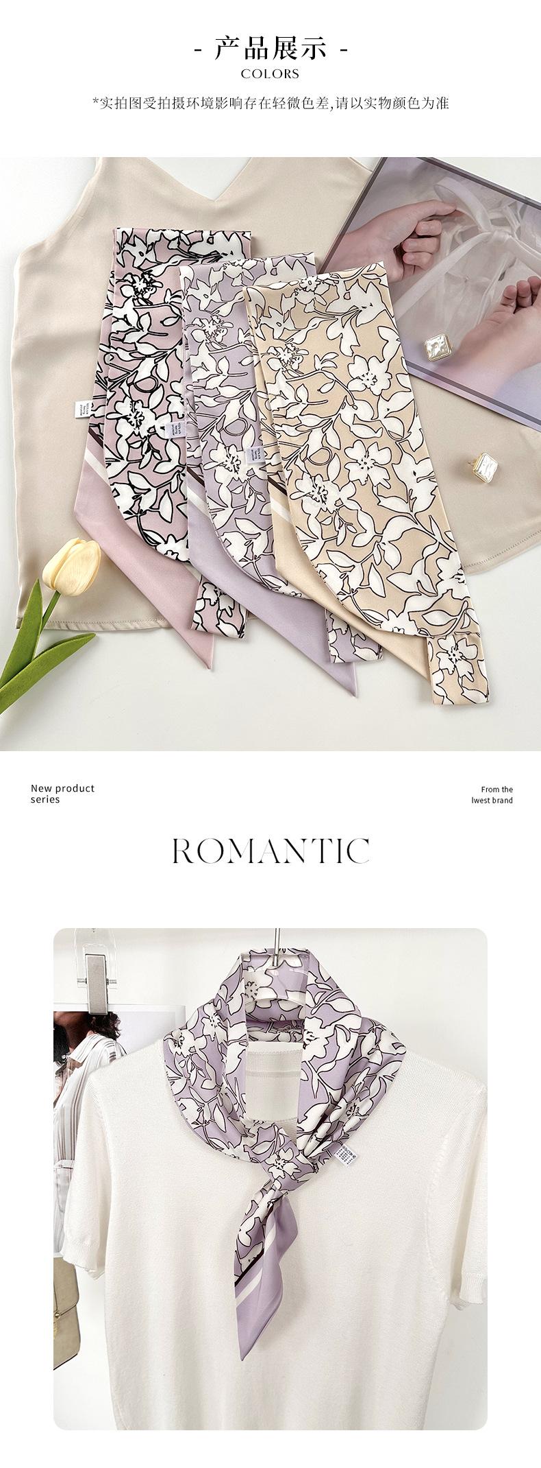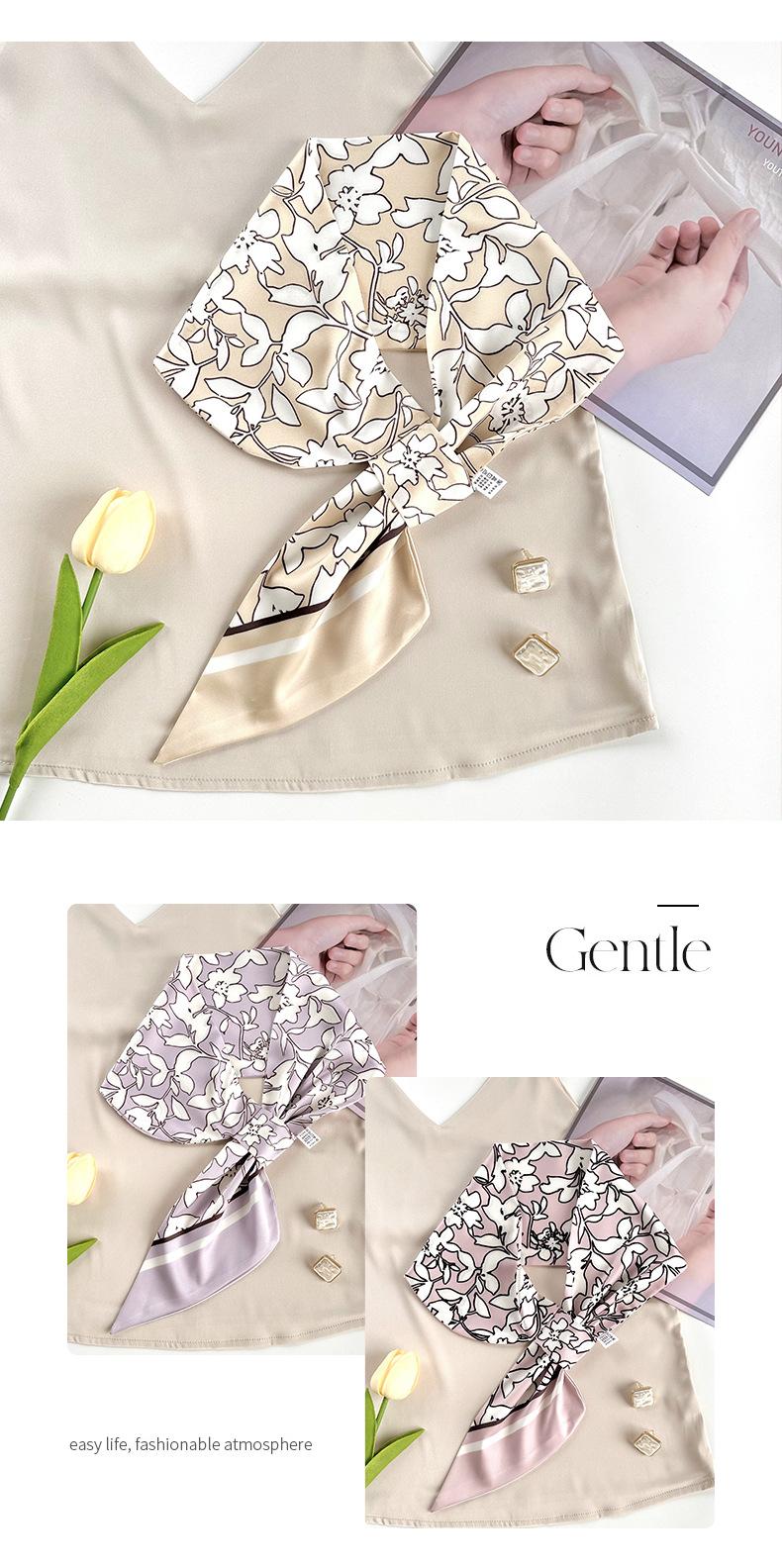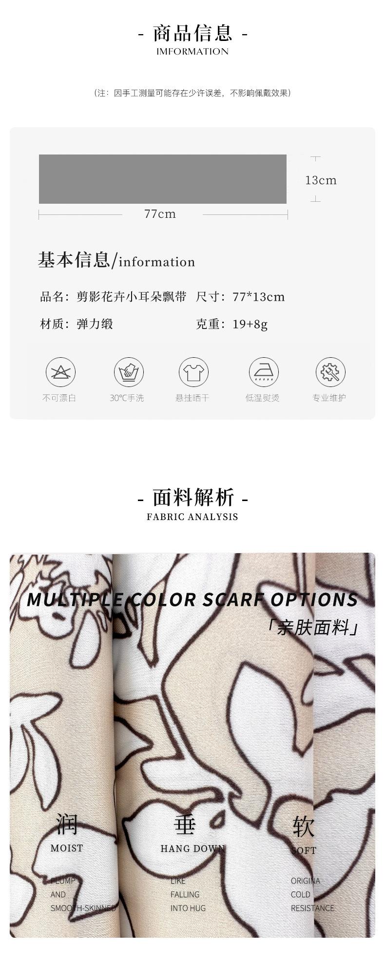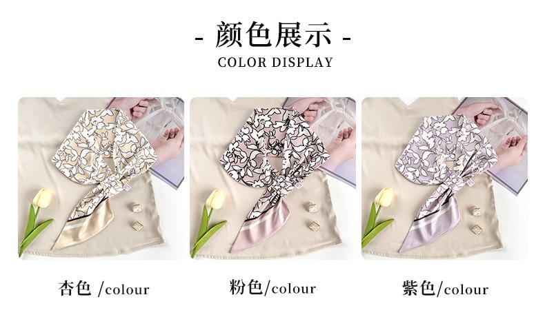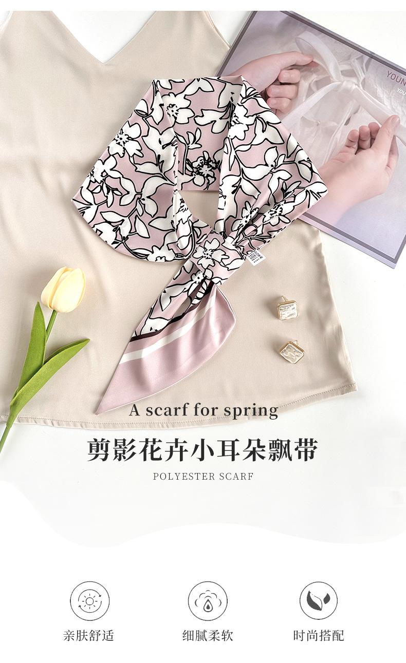 Pañuelo pequeño de seda romántico francés retro con flores, temperamento bueno, camisa, pañuelo largo estrecho fino, pañuelo de seda de imitación de seda