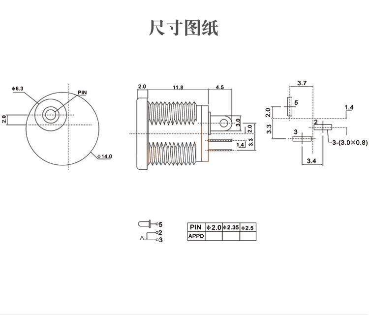 Toma de corriente DC022/DC021 de 5,5 x 2,1 pines, bus CC redondo con tuerca