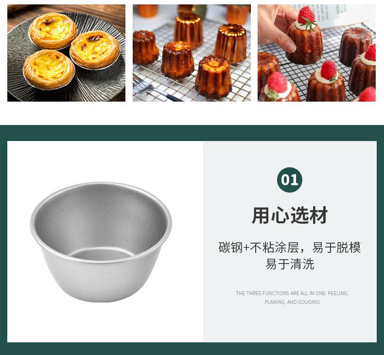 Molde redondo de acero con alto contenido de carbono antiadherente para pudín, taza de gelatina de leche de doble capa, taza para muffins, molde para hornear tartas de huevo y pasteles resistente a altas temperaturas