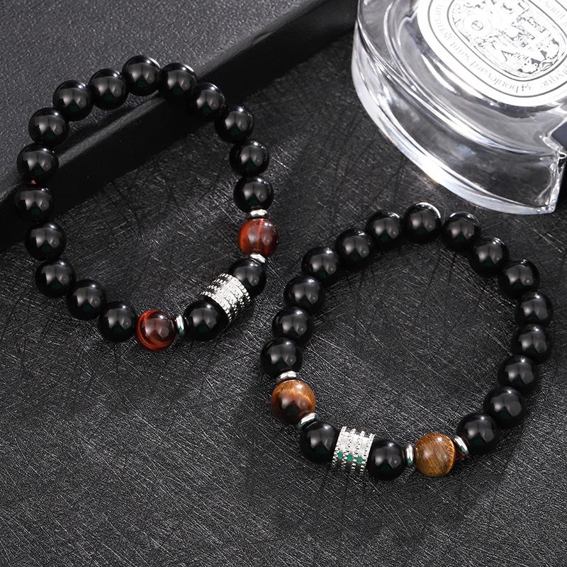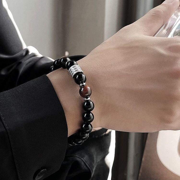 Pulsera de cuentas de obsidiana ojo de tigre al por mayor de fábrica hombres 2025 nueva joyería de ópalo de alto sentido europeo y americano
