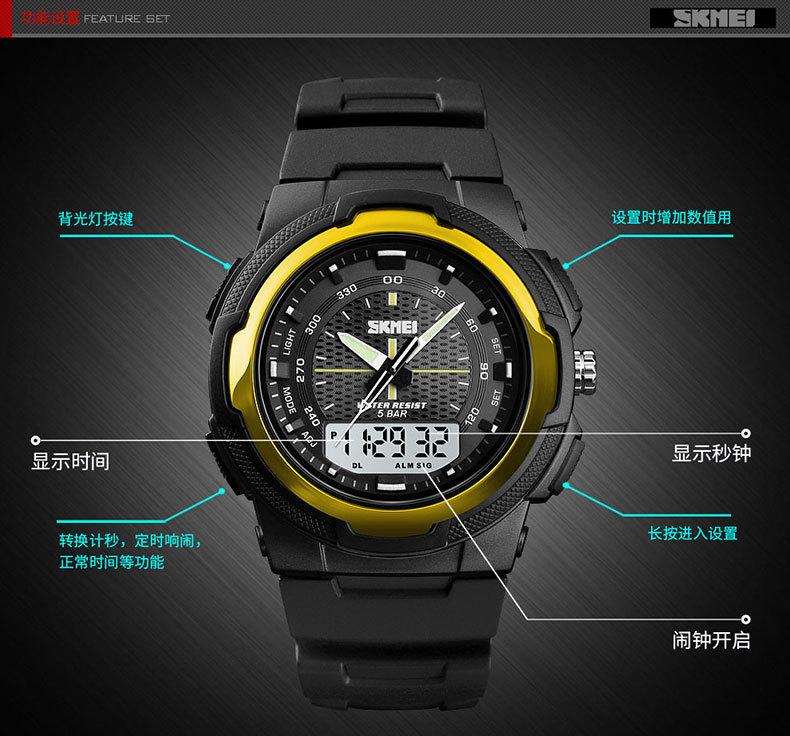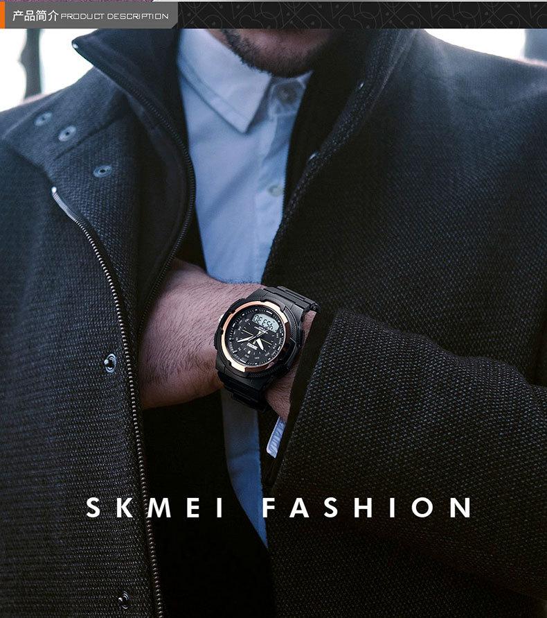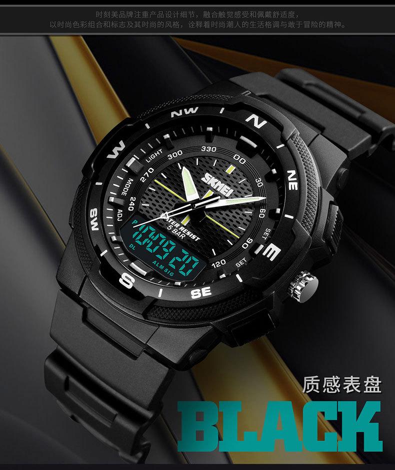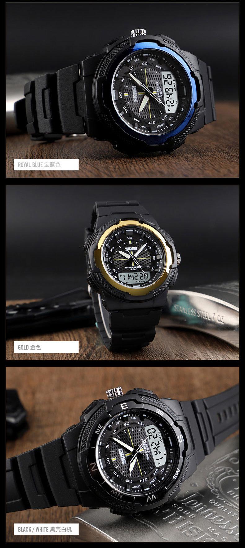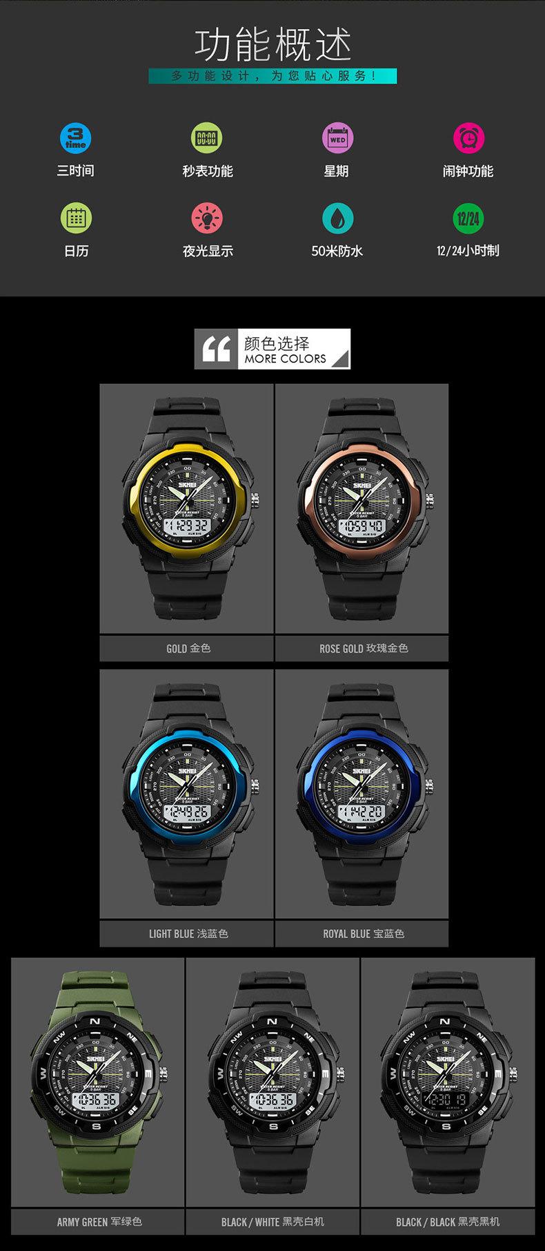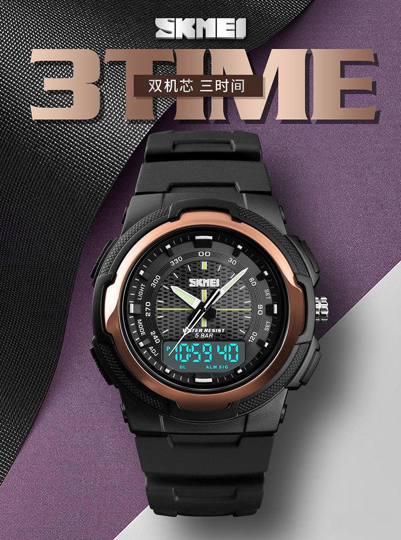 Reloj Electrónico Momentum Sudeste Asiático para Estudiantes, Deportes al Aire Libre Correa de Acero Oro Rosa Doble Pantalla Reloj Impermeable con Esfera Grande