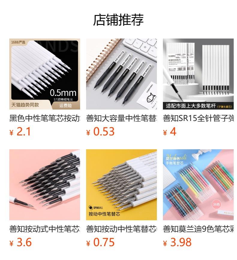 Buen conocimiento ST cabeza secado rápido neutro repuesto 0.38mm negro push pluma de firma de pincel pluma neutra repuesto mayoreo