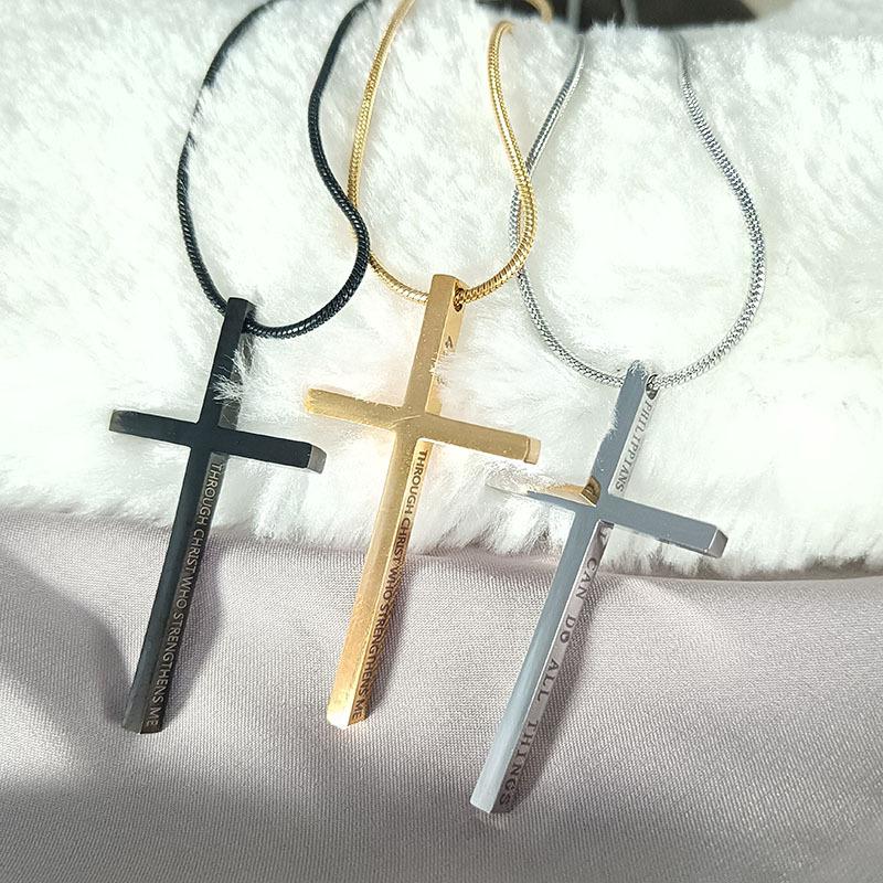 Collar de acero inoxidable personalizado, joyería religiosa, colgante con cadena de hueso de serpiente, joyería de acero de titanio transfronterizo, collar con cruz para hombre