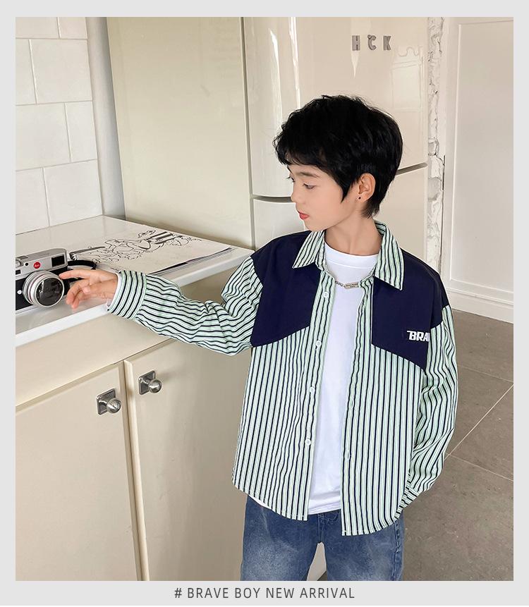Camisa de algodón puro a rayas de manga larga estilo coreano para niño, primavera y otoño 2025, nueva ropa de moda para niños, camisa de estilo occidental