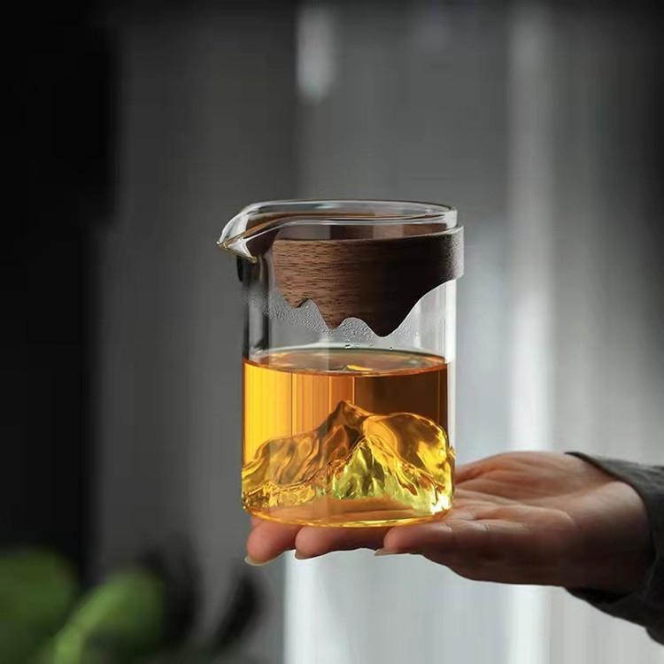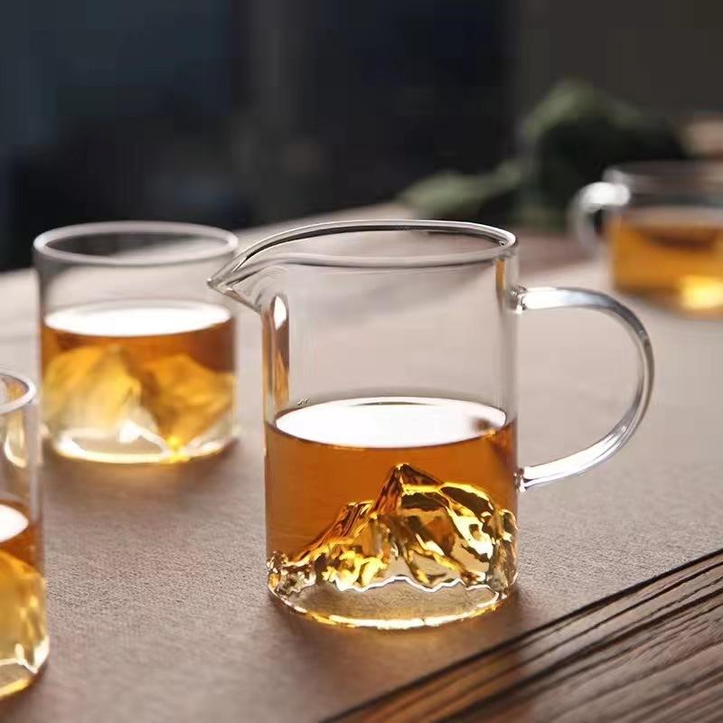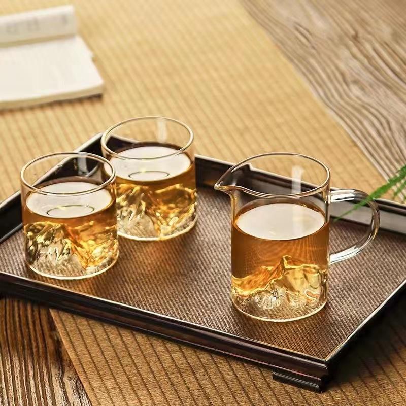 Dispensador de té de vidrio creativo con aislamiento térmico Copa Gongdao Montaña Fuji Japonés transparente engrosado Antiescaldado para servir té té kung fu taza masculina