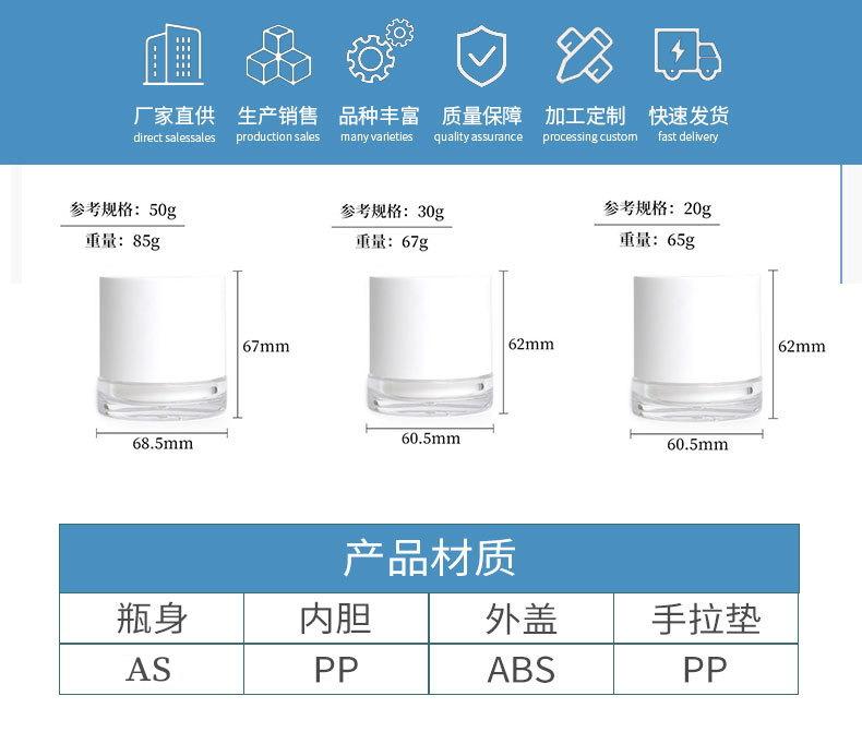 20g white cream bottle (with spoon); acrylic cream bottle; plastic