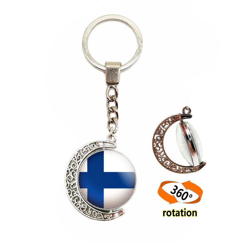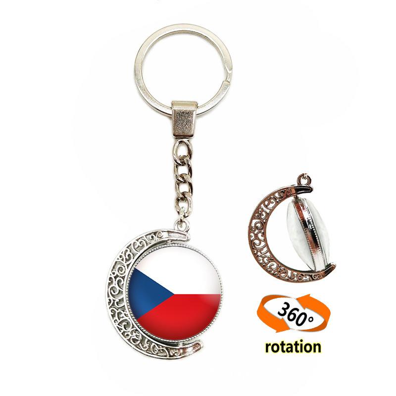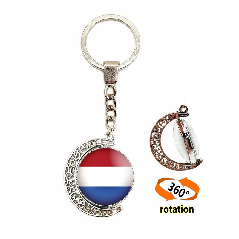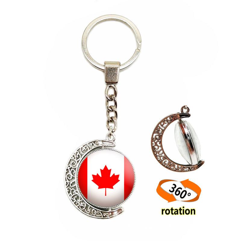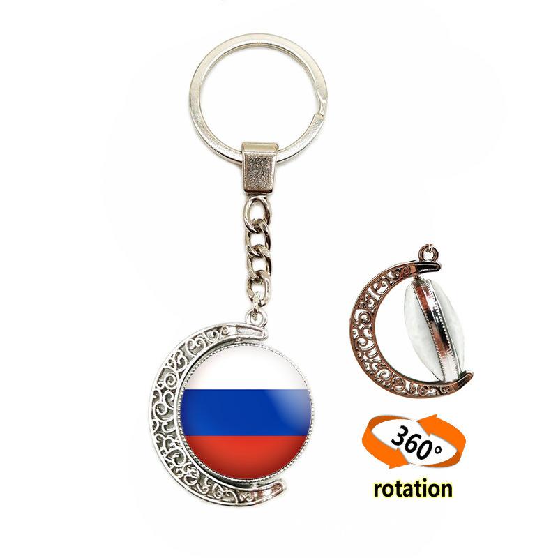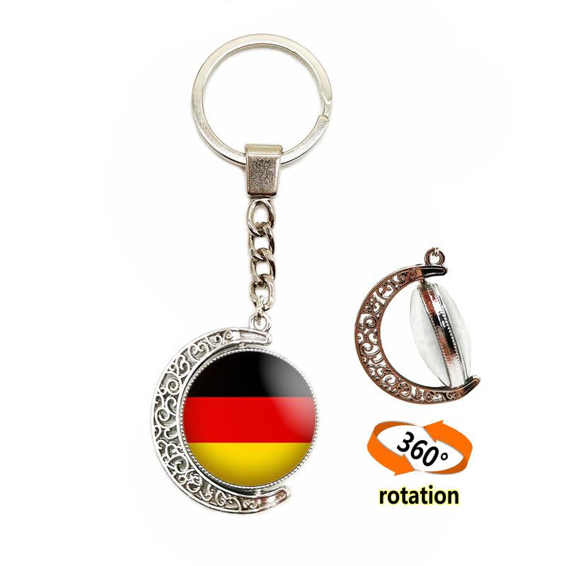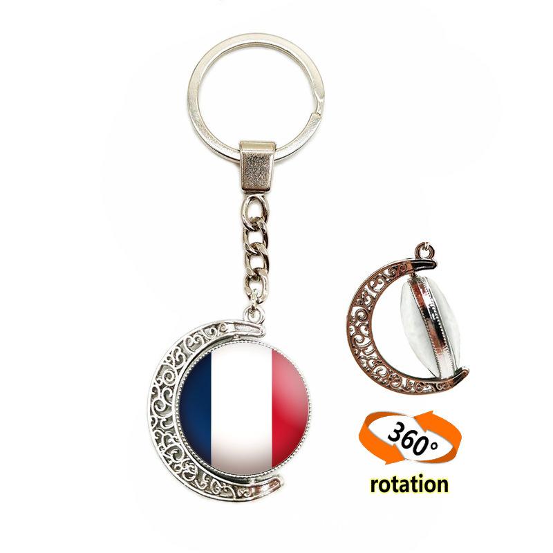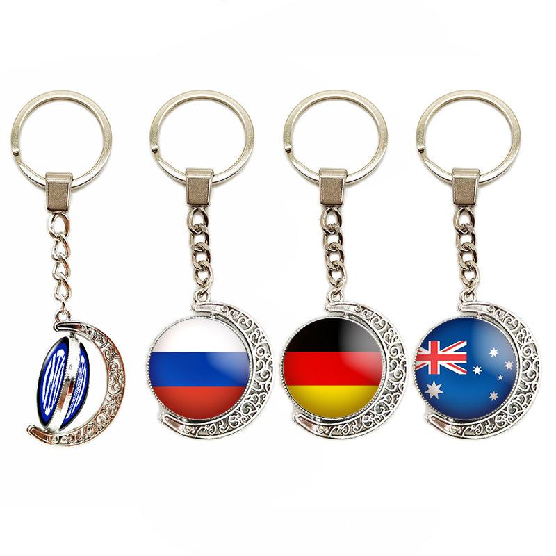 Patrón de logotipo de bandera británica, francesa, alemana, estadounidense y europea, llavero giratorio de media luna, accesorios colgantes para bolso con bandera transfronteriza