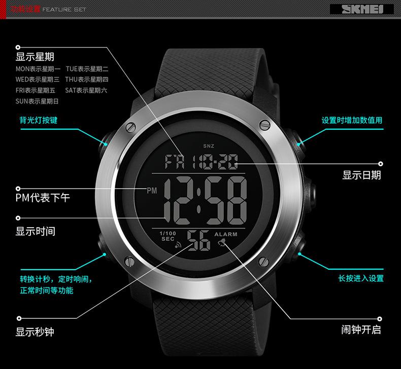 Reloj Deportivo de Moda Skmei Moment Beauty Luz de Fondo EL Multifuncional Estudiante Ebay Comercio Exterior Popular Reloj Electrónico
