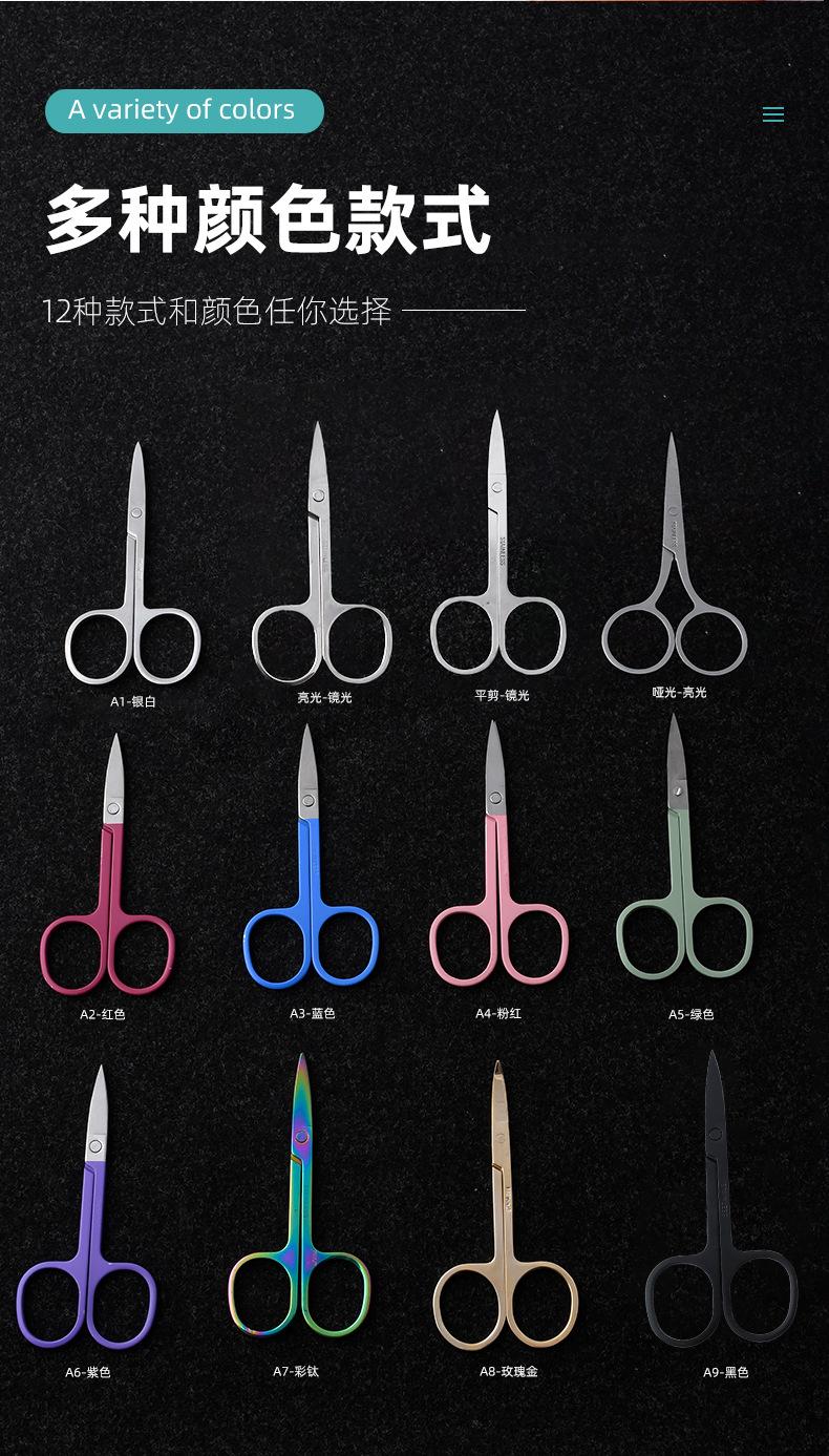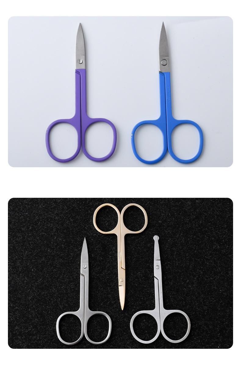 Tijeras de bordado de acero inoxidable 2.0, brillantes, para hombres y mujeres, recortadoras de vello nasal de cabeza redonda, tijeras para vello nasal, recortadoras de vello de cejas de titanio de color.