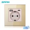 20W Estándar europeo orificio redondo estilo alemán Corea del Sur toma de pared estilo europeo con carga rápida USB + TYPEC toma de panel de vidrio