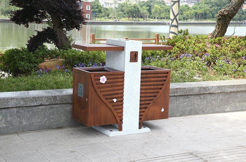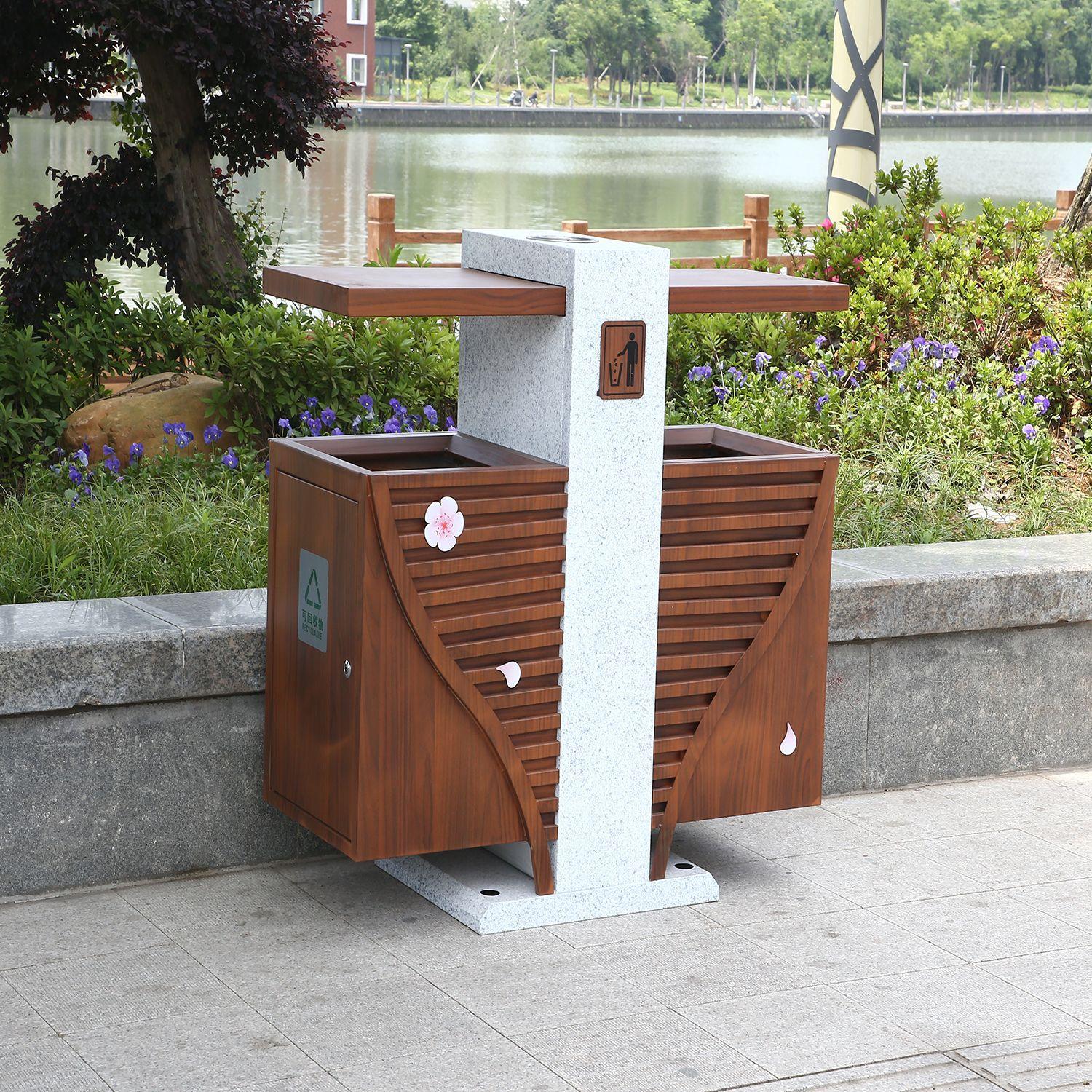Compra Venta al por mayor de fabricantes Contenedor de basura doble grande para clasificación de basura en áreas escénicas al aire libre, áreas de administración de propiedades, material creativo de acero inoxidable al por mayor en Joom.pro