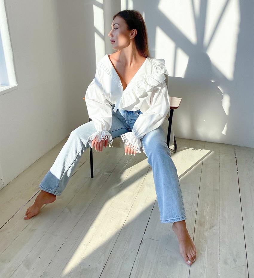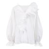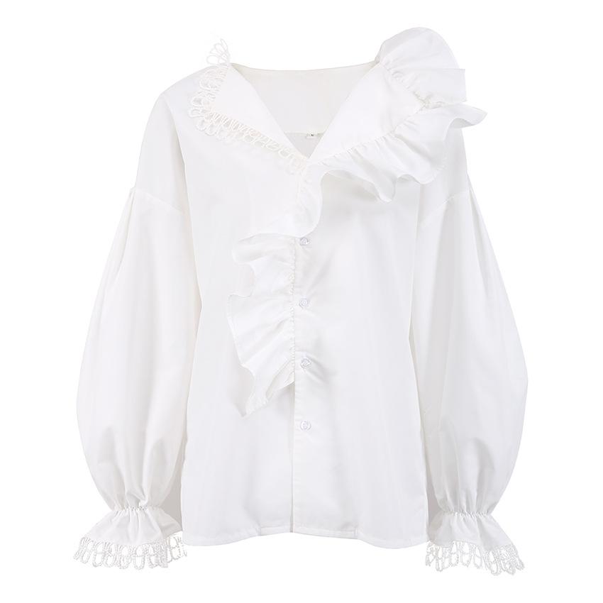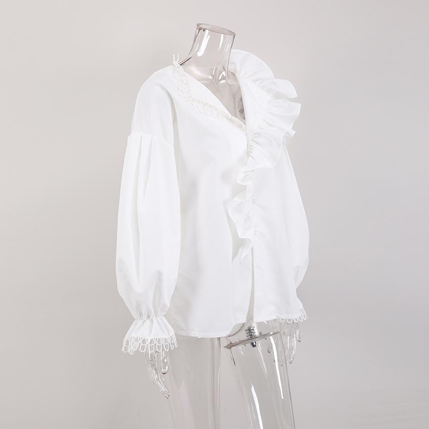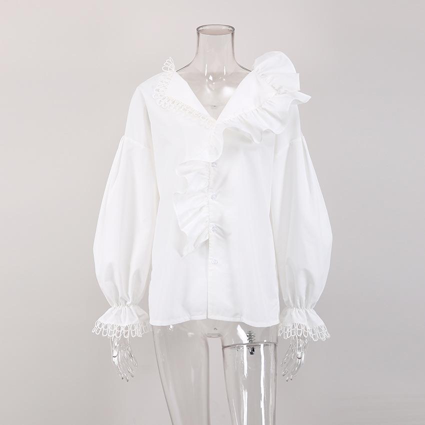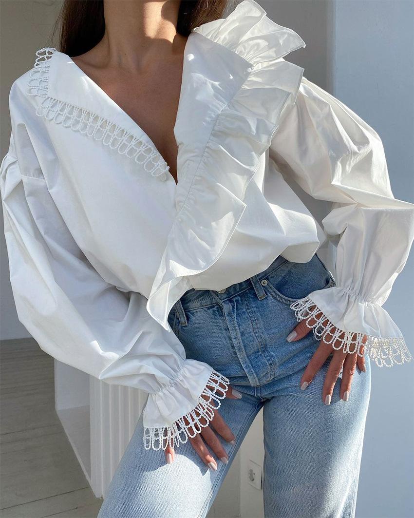 Otoño 2025 Camisas Europeas y Americanas para Mujer Sexy Cuello en V Profundo Hongo Manga Larga Elegante Moda Empalme Encaje Camisa
