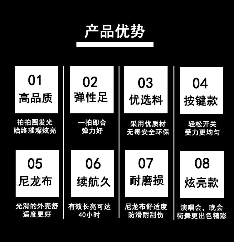 Anillo de aplausos de PVC, pulsera luminosa LED para correr, deportes, anillo de aplausos luminoso, pulsera luminosa de PVC, banda LED intermitente