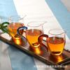 Juego de té Kung Fu, vaso de té exquisito, taza de feria, mango de color grueso, taza de genciana, vaso de té de vidrio marino transparente