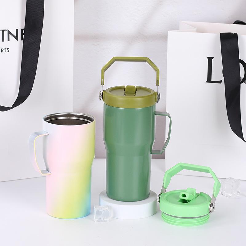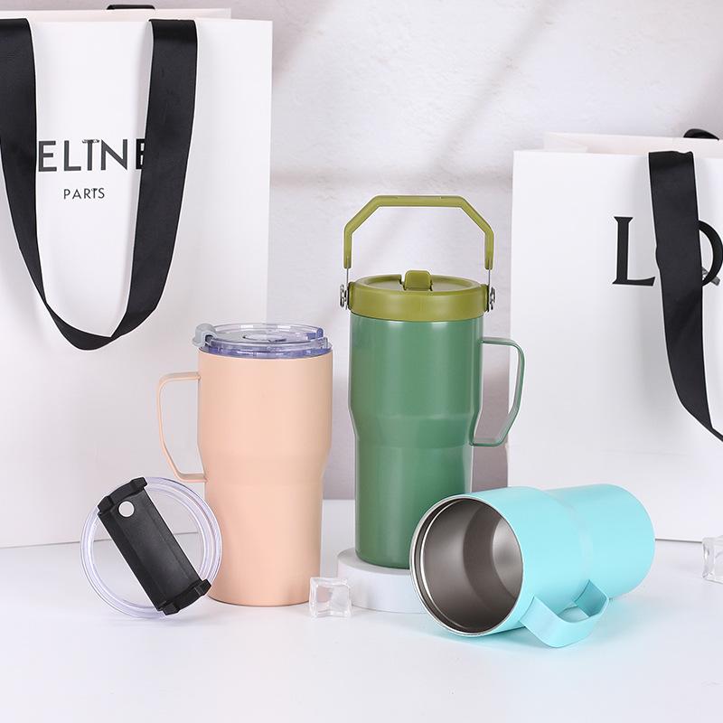 Taza de coche con asa de acero inoxidable 304 transfronteriza, portátil, para viajes al aire libre, con aislamiento, para hielo frío