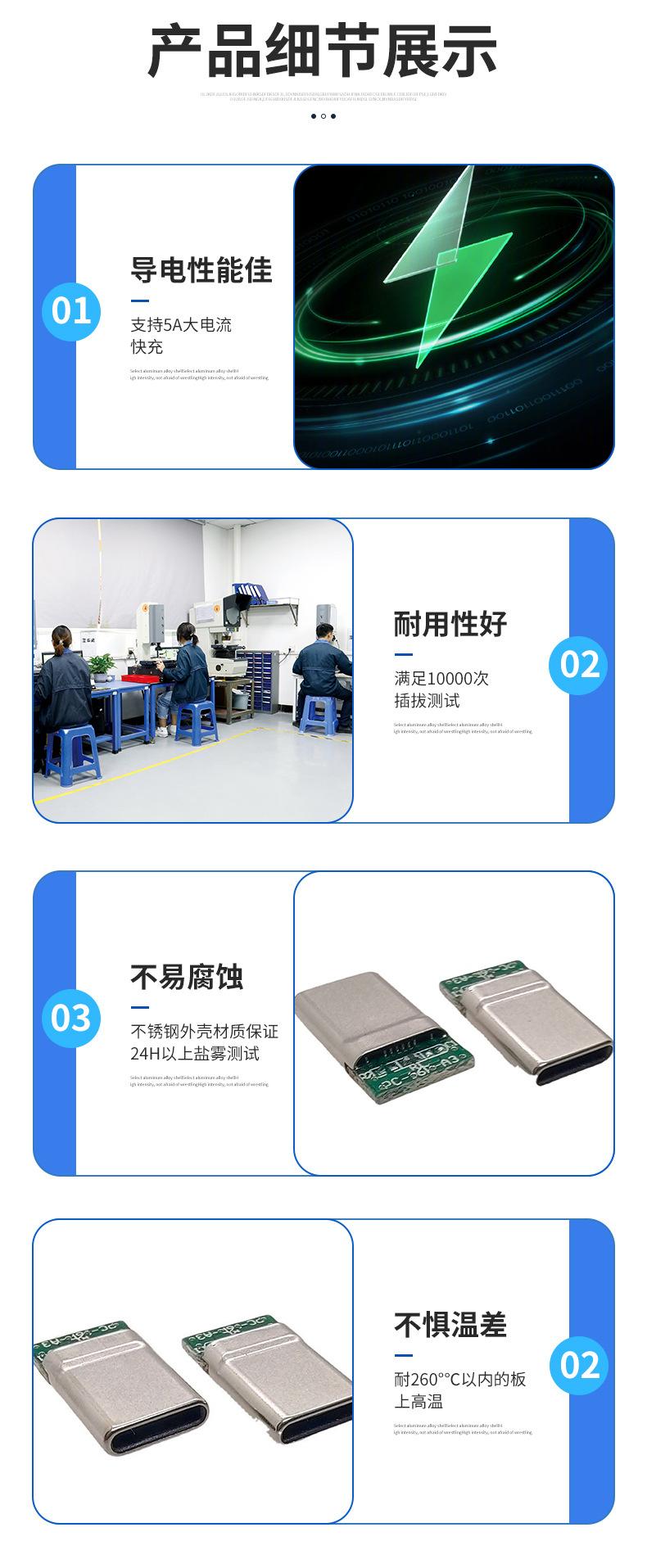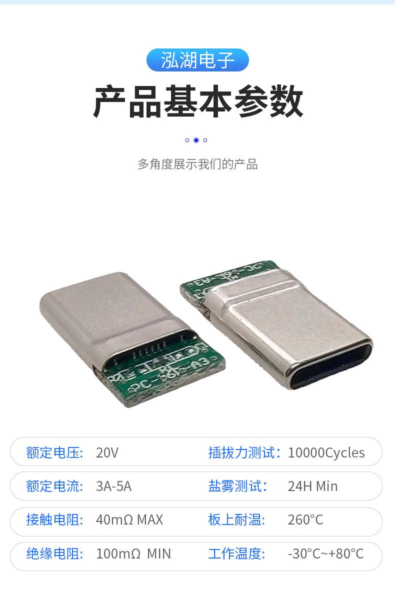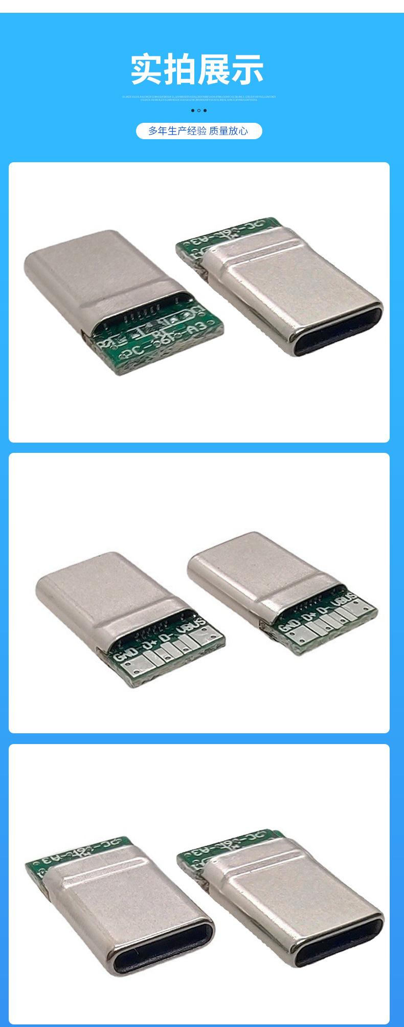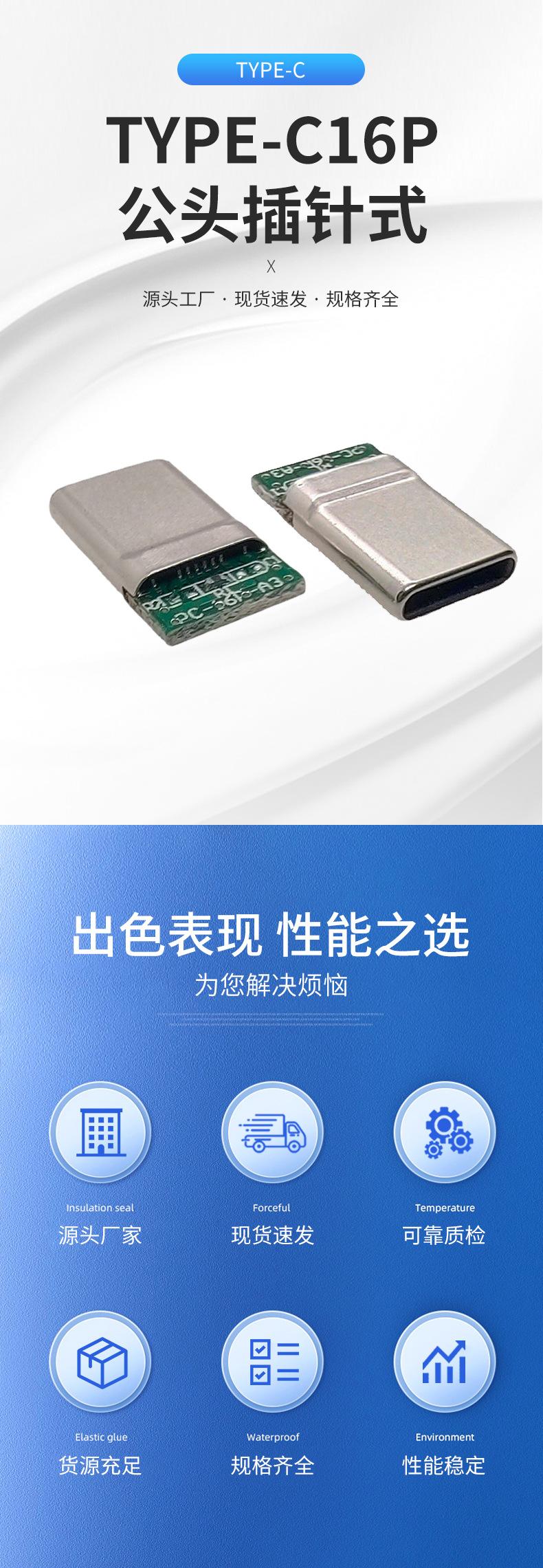 Conector de carga de datos de pin macho TYPE-C16P A-C con cuatro juntas de soldadura, enchufe macho TYPEC