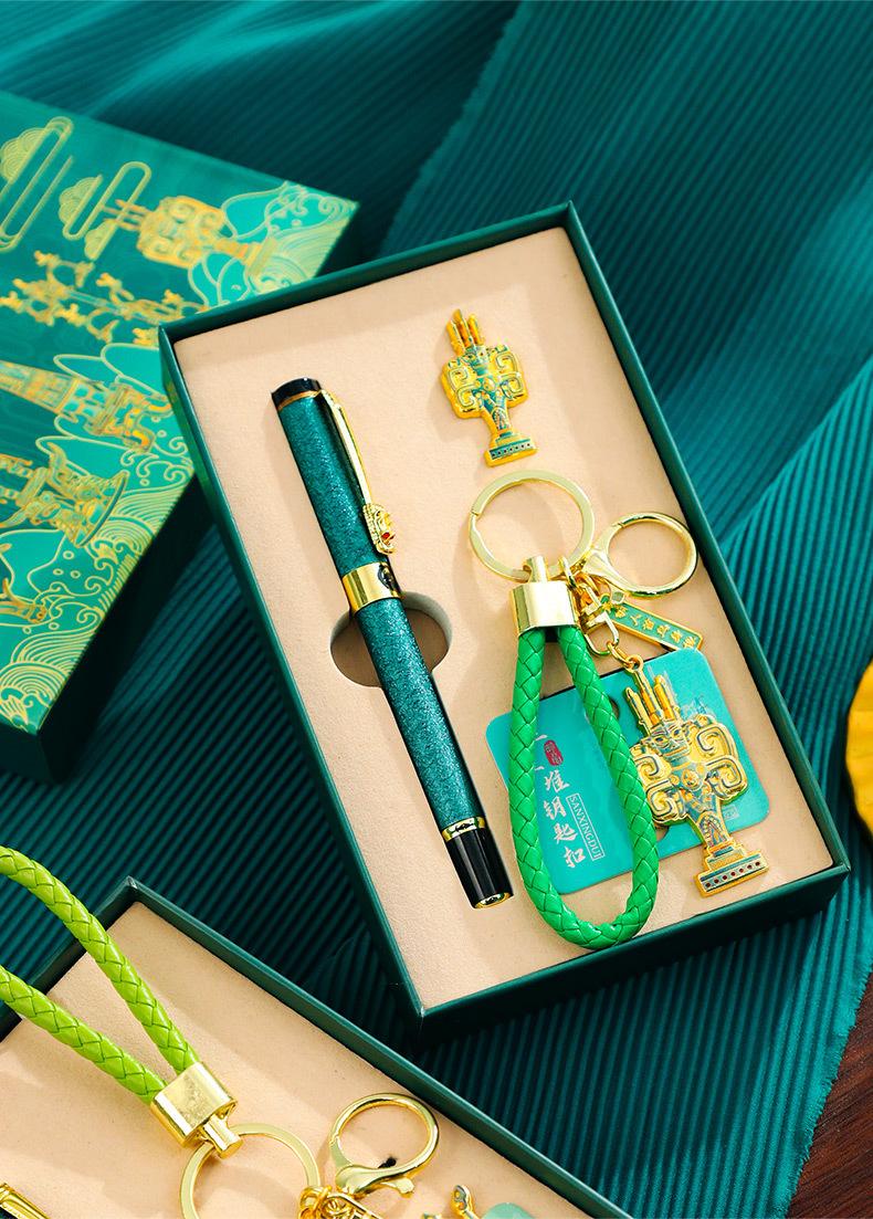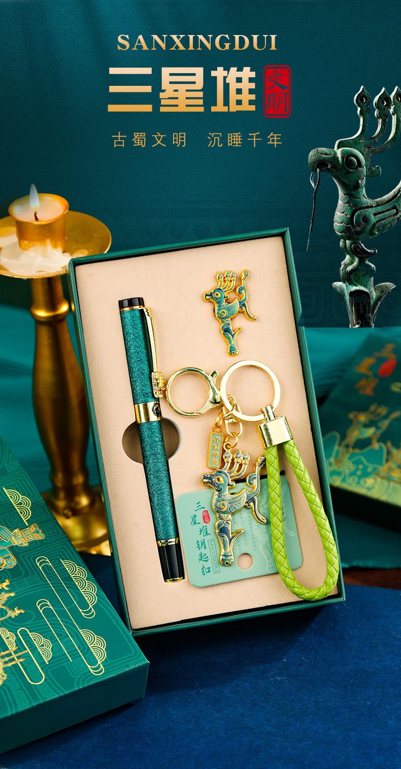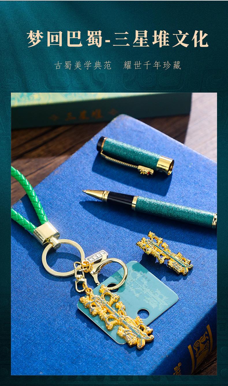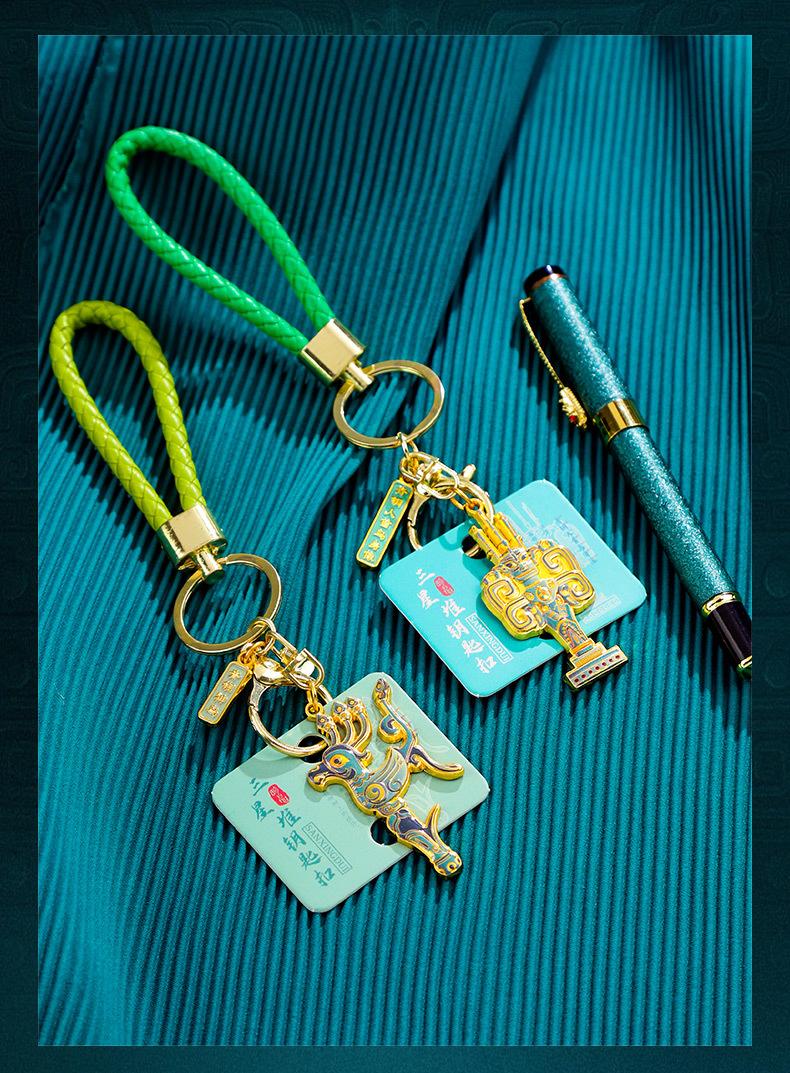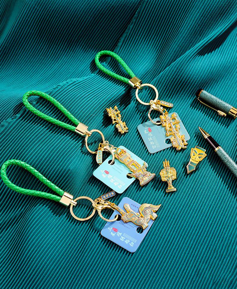 Joyería decorativa creativa cultural Sanxingdui llavero de metal broche creativo insignia regalo de museo Pluma negra de secado rápido