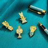 Crown wearing vertical mask (badge + keychain) + dark green faucet pen, Gold-faced bronze avatar (badge + keyc...