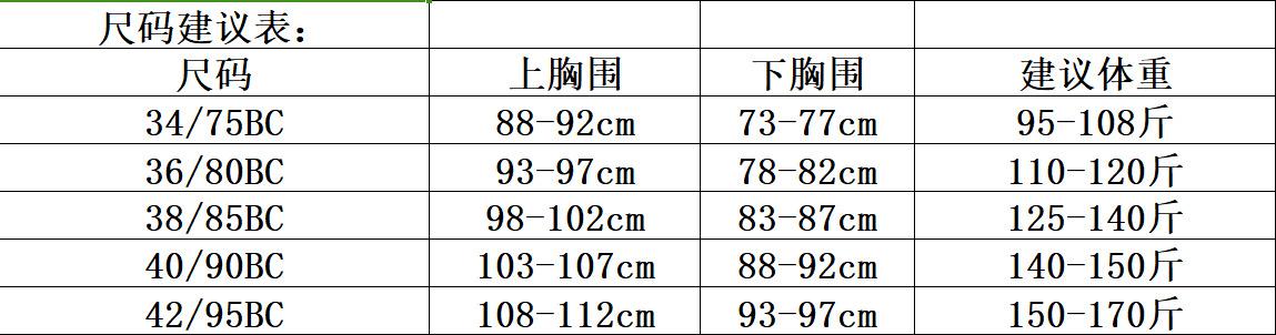 34/75BC, 36/80BC, 38/85BC, 40/90BC, 42/95BC