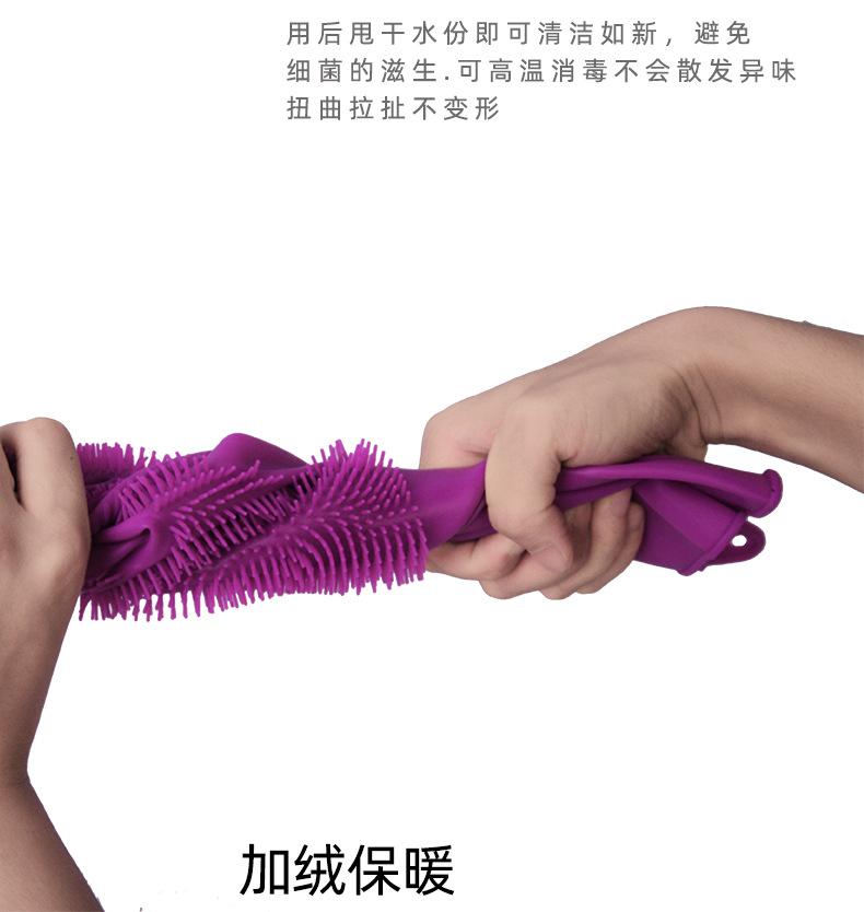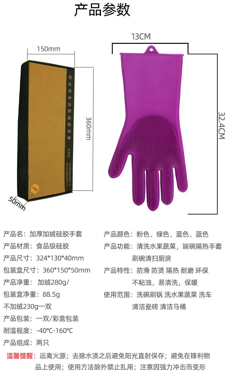 Diseño de cabezal de cepillo apretado, el lavado de platos "con las manos desnudas" es más limpio, tres mil cepillos de limpieza, cepillar es más limpio y conveniente para la desinfección, se puede desinfectar a alta temperatura, resistente al calor, interior anti-escaldaduras con terciopelo, no se congela en invierno, puede soportar hasta menos 40 grados