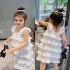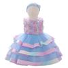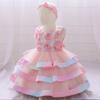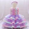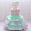 Vestido Nuevo para Niños 2024 Vestido para Bebé de Un Año Accesorios Exquisitos para el Cabello de Mujer Flor de Malla Vestido de Pastel Acolchado