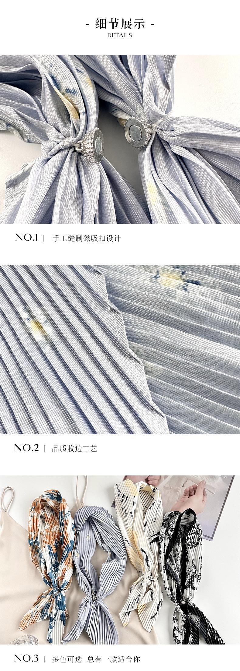 Compra Pañuelo de Seda con Estampado de Plantas y Hebilla Magnética Diseño Popular Ins Pañuelo de Chifón Romboidal Pañuelo Plisado Moderno al Por Mayor al por mayor en Joom.pro