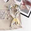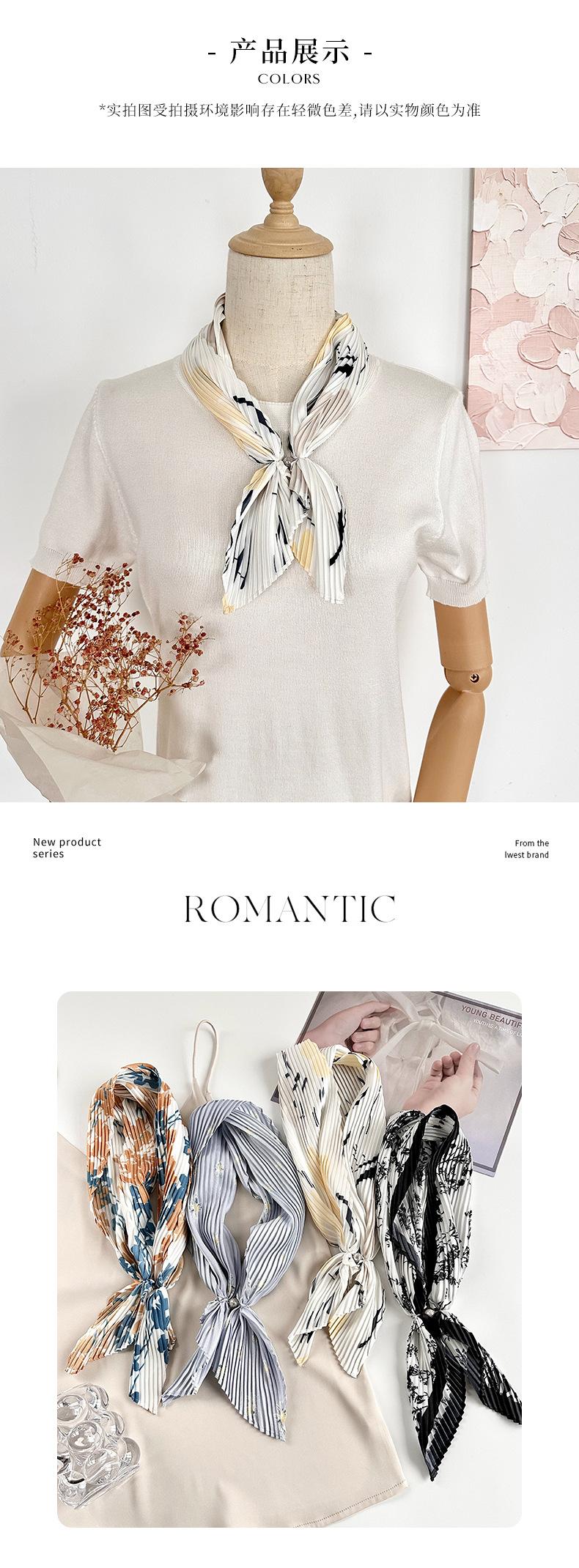 Pañuelo de Seda con Estampado de Plantas y Hebilla Magnética Diseño Popular Ins Pañuelo de Chifón Romboidal Pañuelo Plisado Moderno al Por Mayor