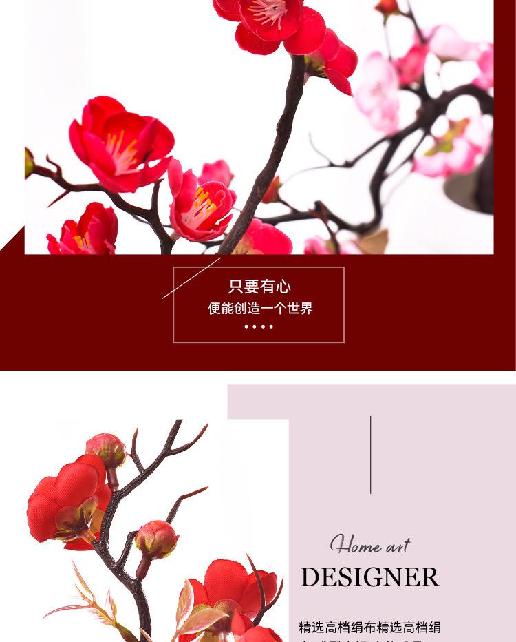 Red exquisite plum + small oblique vase, Pink Linglong plum + small oblique vase, Rose exquisite plum + small ...