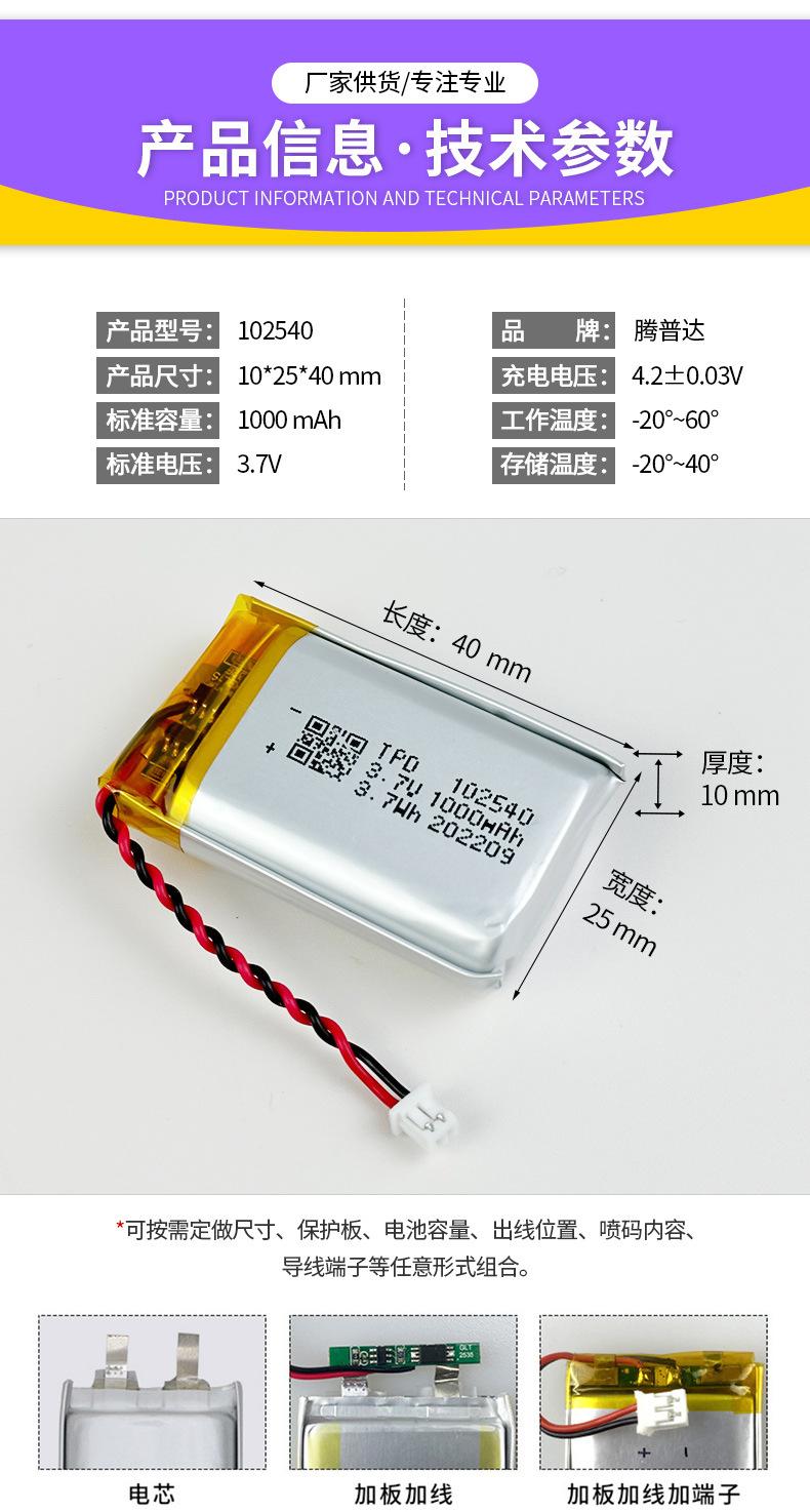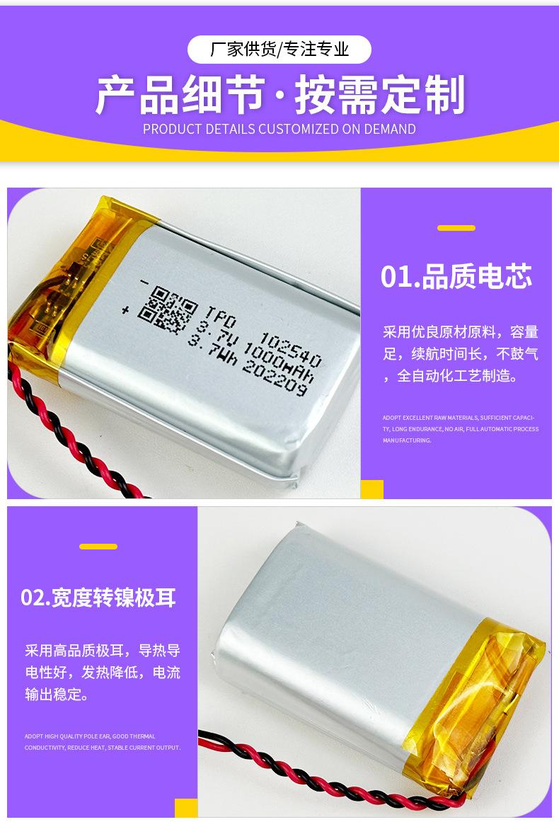 Compra Batería de polímero de litio 102540 3.7v1000mah carga de instrumento de belleza almacén batería de juguete para niños al por mayor al por mayor en Joom.pro