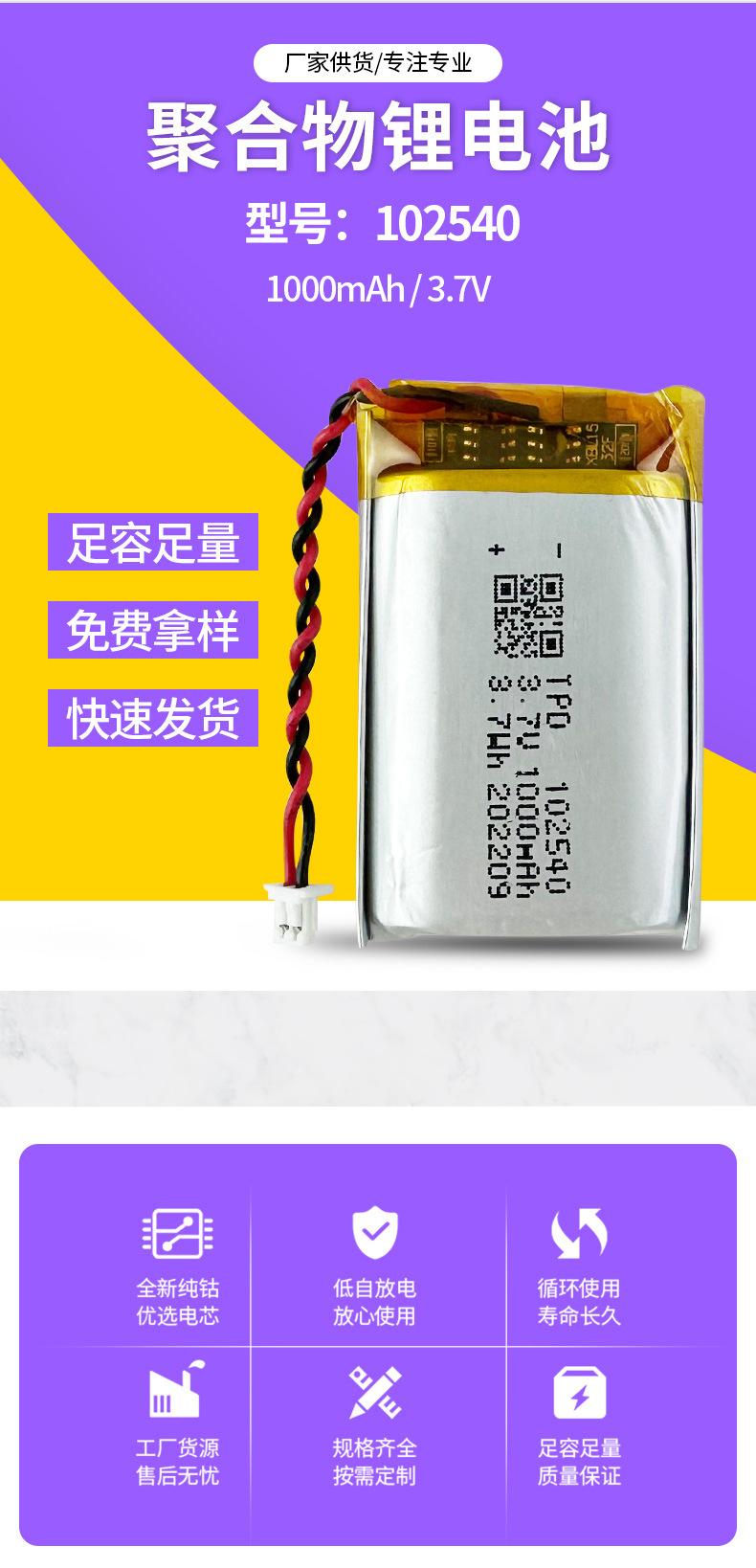 Batería de polímero de litio 102540 3.7v1000mah carga de instrumento de belleza almacén batería de juguete para niños al por mayor