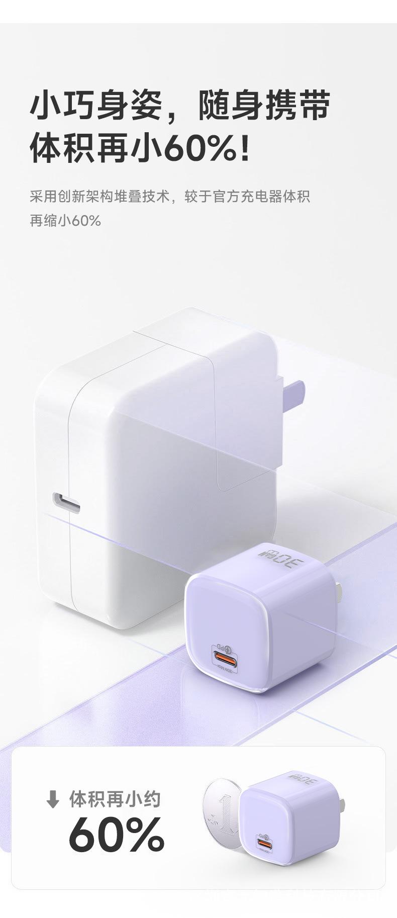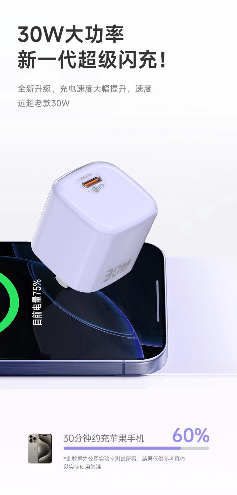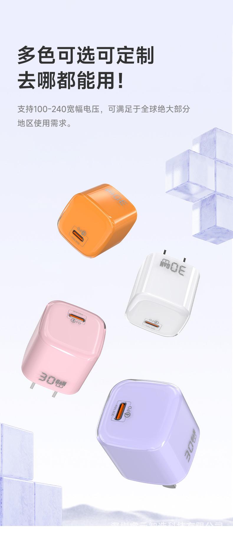 Adecuado para Huawei Apple 17 Cargador Mini Cristal de Hielo Pequeño Pd30W Teléfono Móvil Cabezal de Carga de Nitruro de Galio Cabezal de Carga Rápida Gan