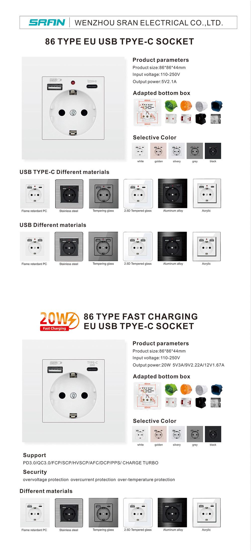 Estándar Alemán Estándar Europeo Enchufe Alemán con USB Dual Estándar Europeo 16A Estándar Francés Estándar Europeo con USB Enchufe de Pared Europeo