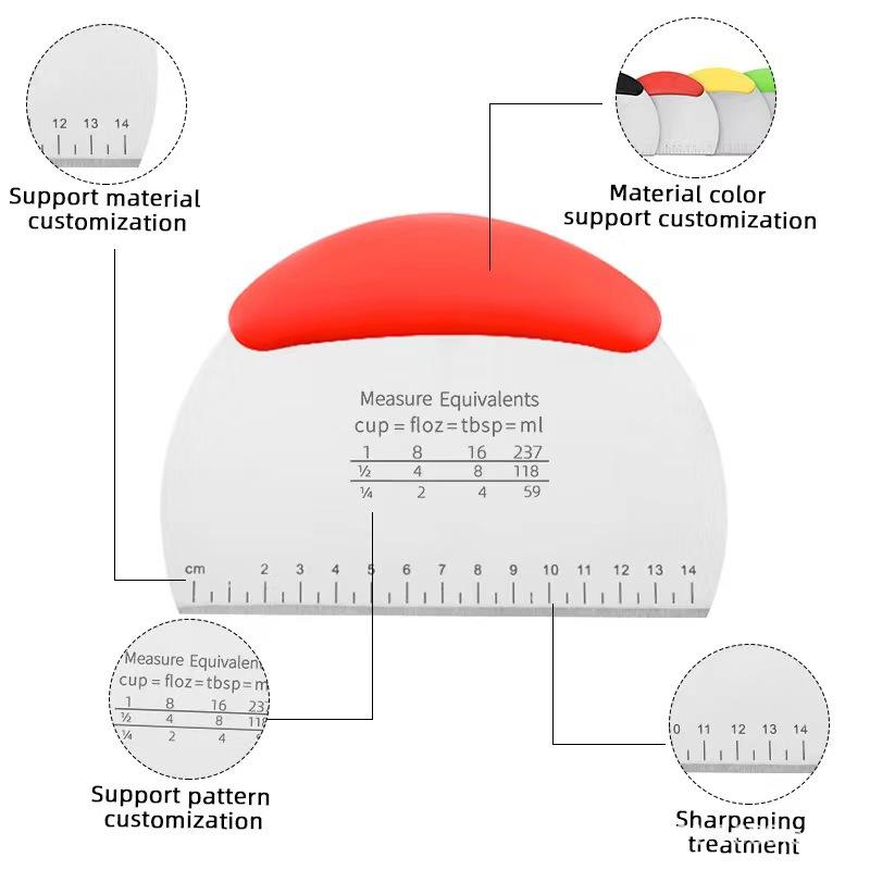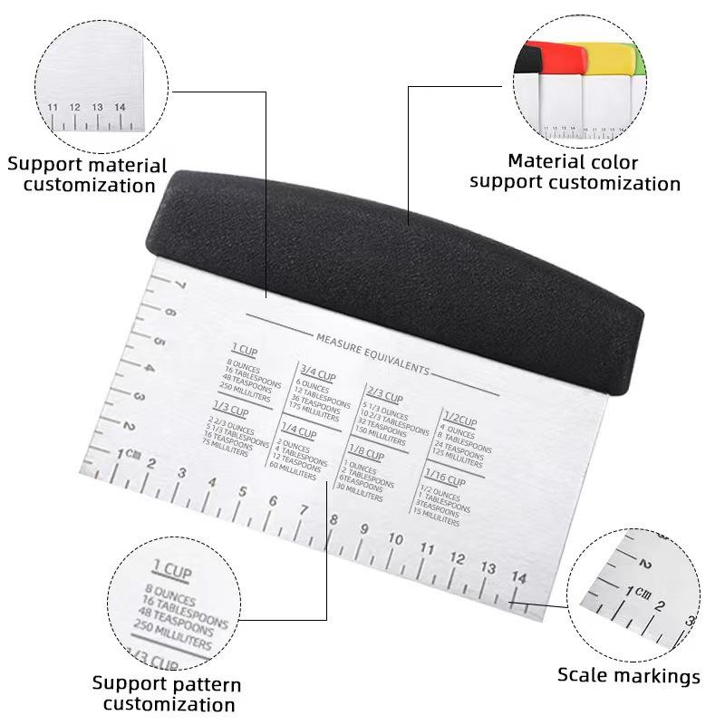 Cortador de fideos de acero inoxidable con escala, herramientas para hornear, cortador de harina, cortador de masa de turrón, una generación de franqueo