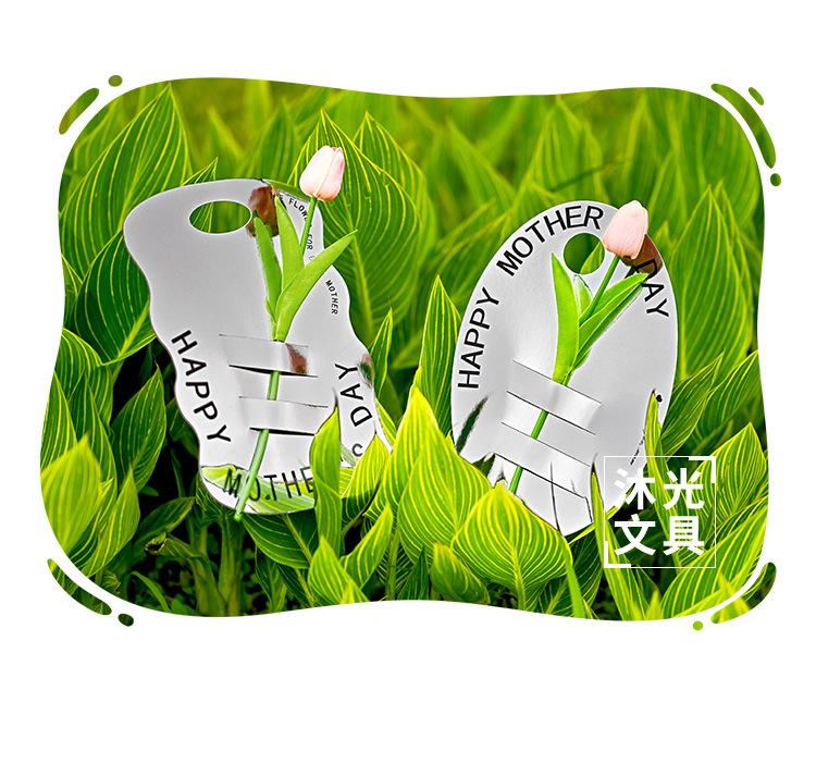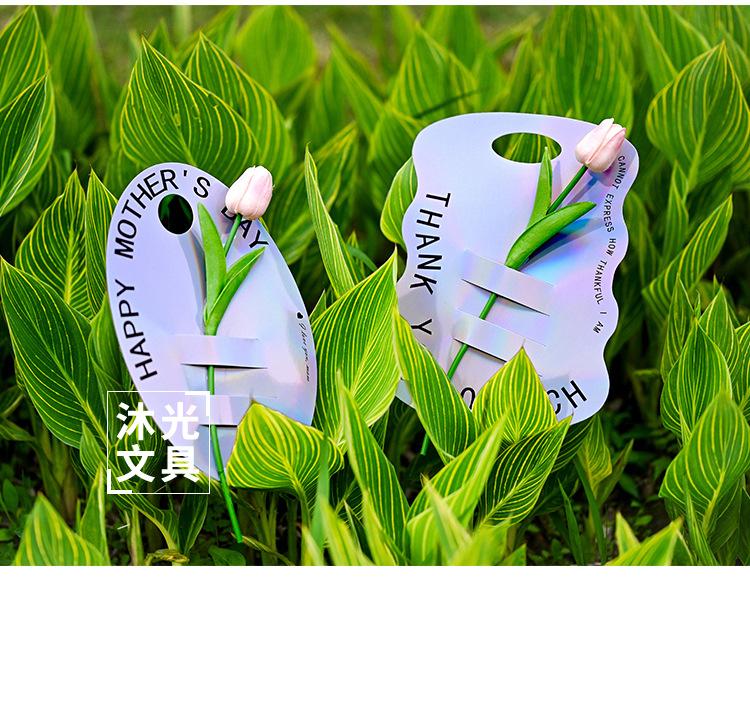 Día del Maestro Tarjeta Plateada de Alta Gama Tarjeta Láser Día de la Diosa Embalaje Floral Ramo de una Sola Bolsa Tarjeta de Felicitación Tarjeta de Flores DIY