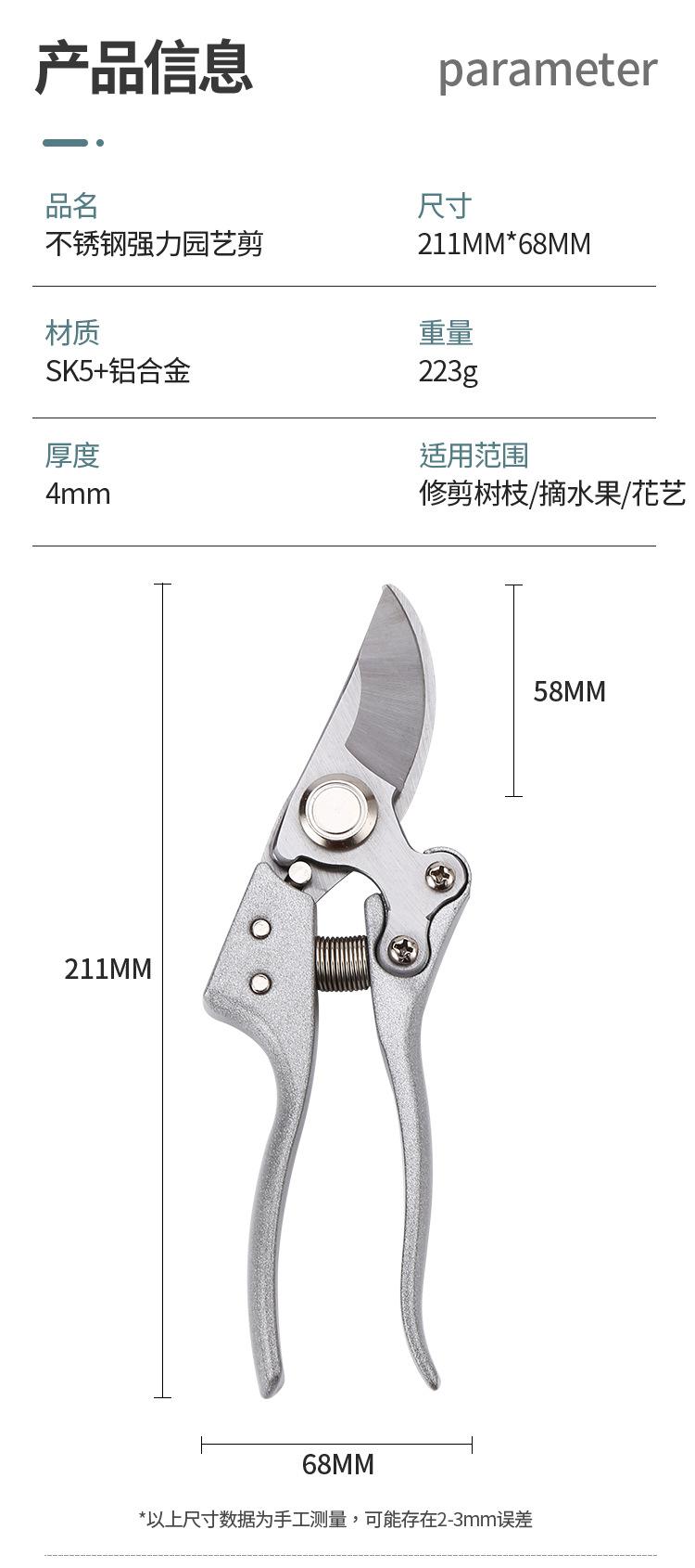 Tijeras de Podar de Acero Inoxidable SK5 Herramientas de Jardín Injerto de Árbol Frutal Tijeras para Recolección de Fruta Tijeras de Jardinería para Ramas Gruesas Tijeras Fuertes Afiladas