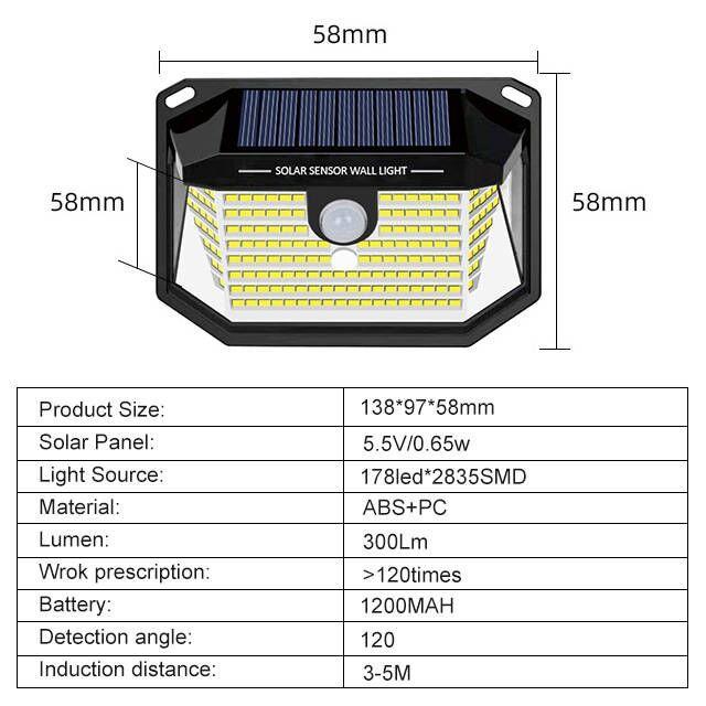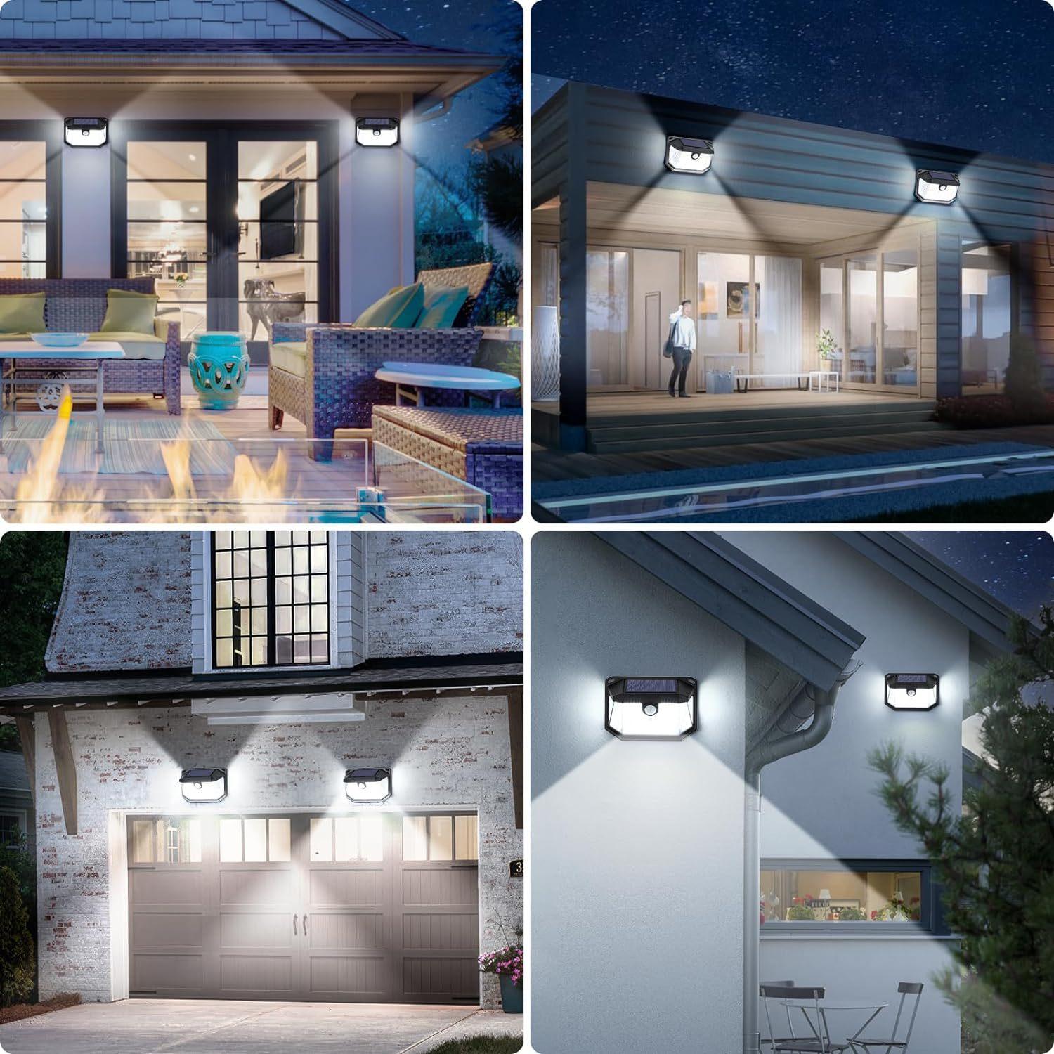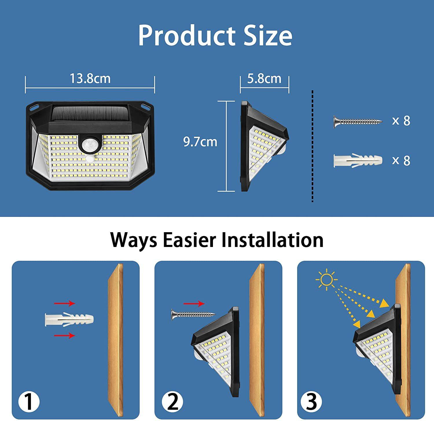 Lámpara solar de pared para exteriores, con sensor de movimiento, ideal para patio, garaje, casa, 178 LED.
