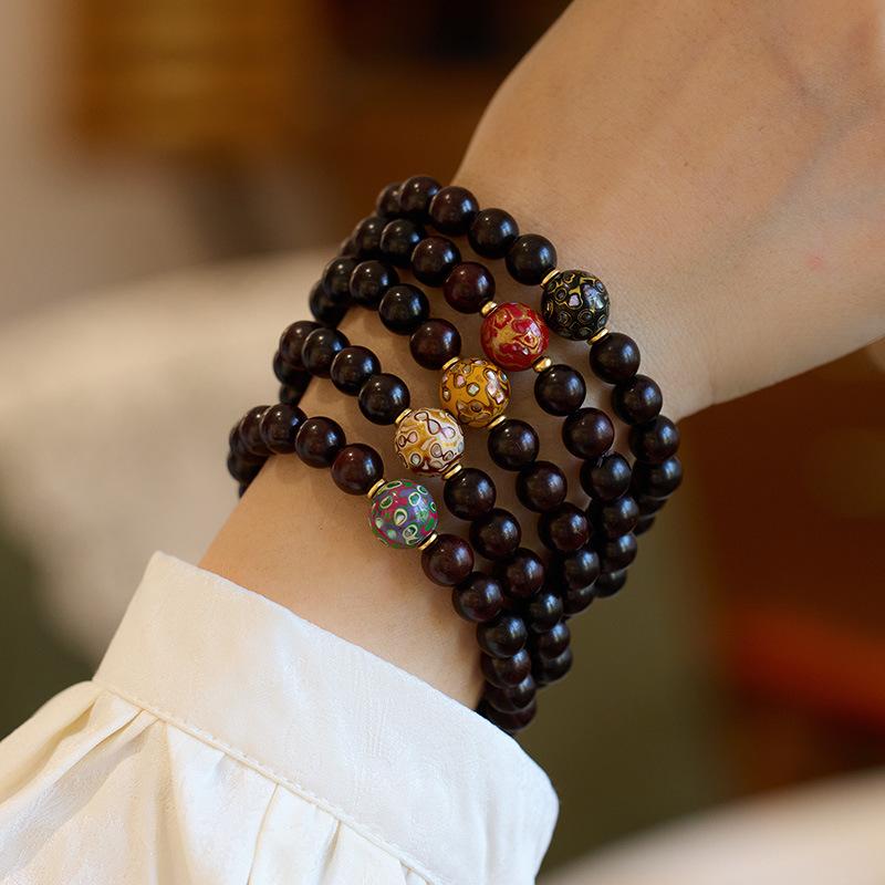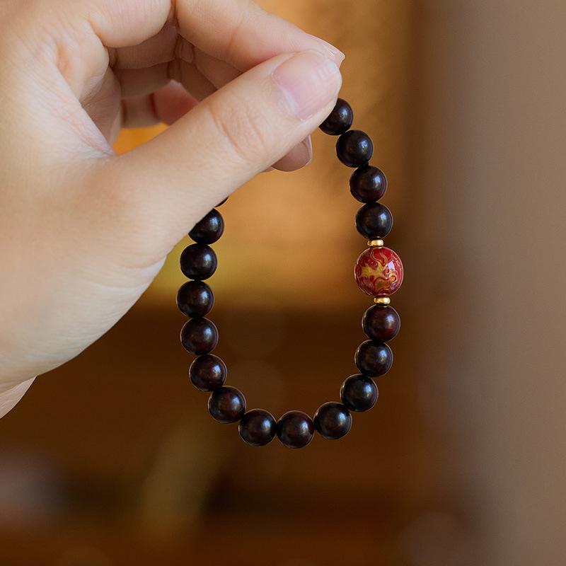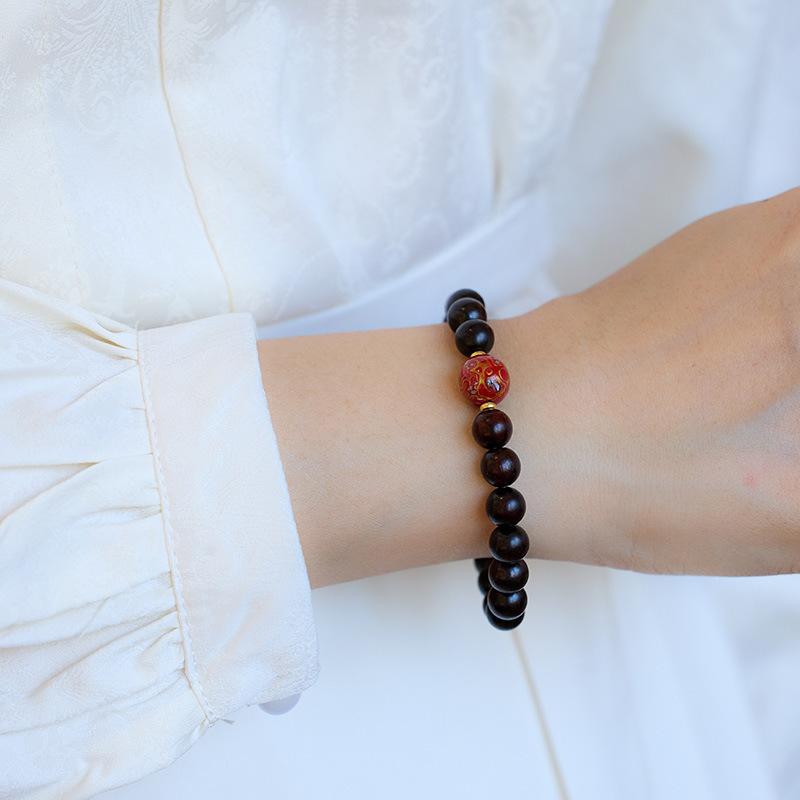 | Tamaño | Sándalo rojo de hoja pequeña de 8 mm, cuentas de laca de patrimonio cultural inmaterial de 10 mm, adecuado para muñecas de 14-16 cm de circunferencia