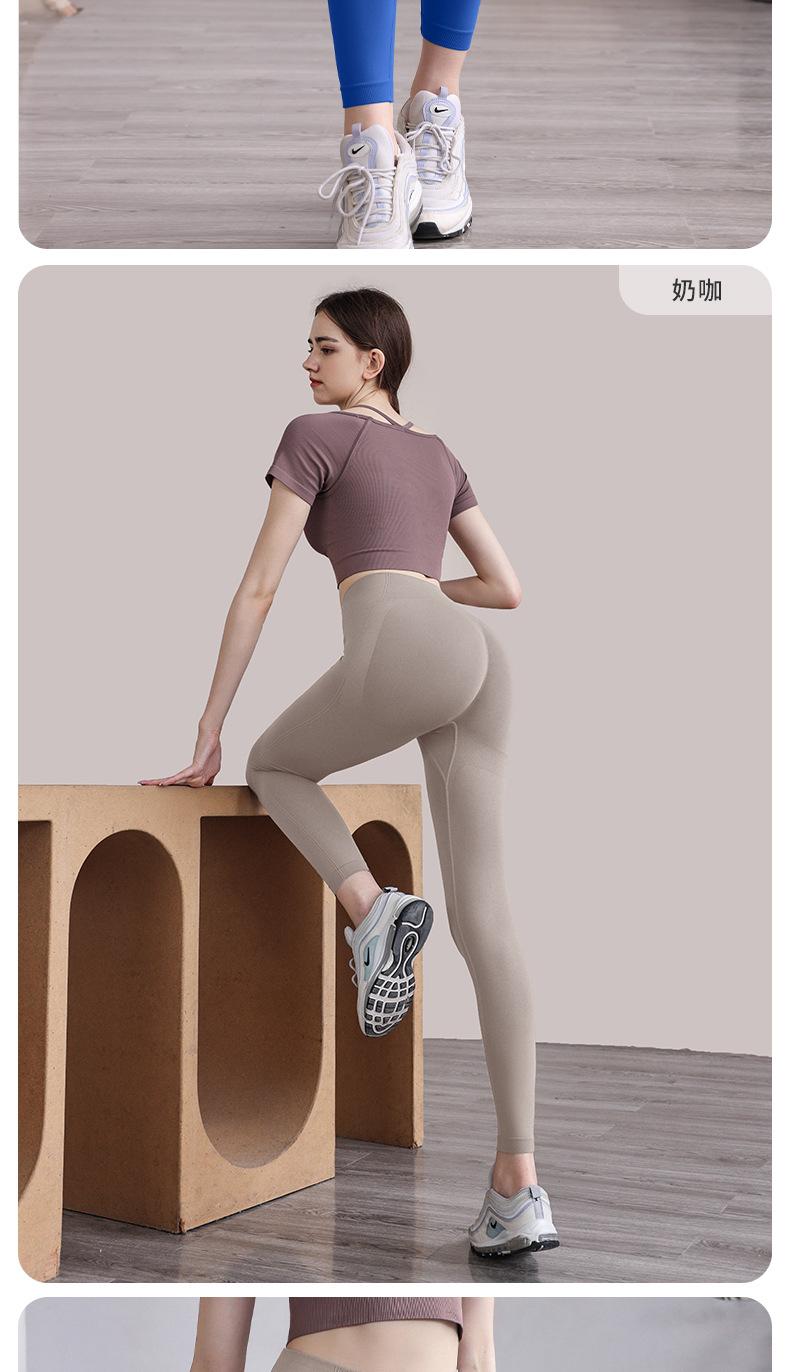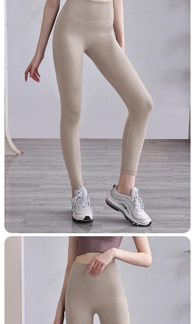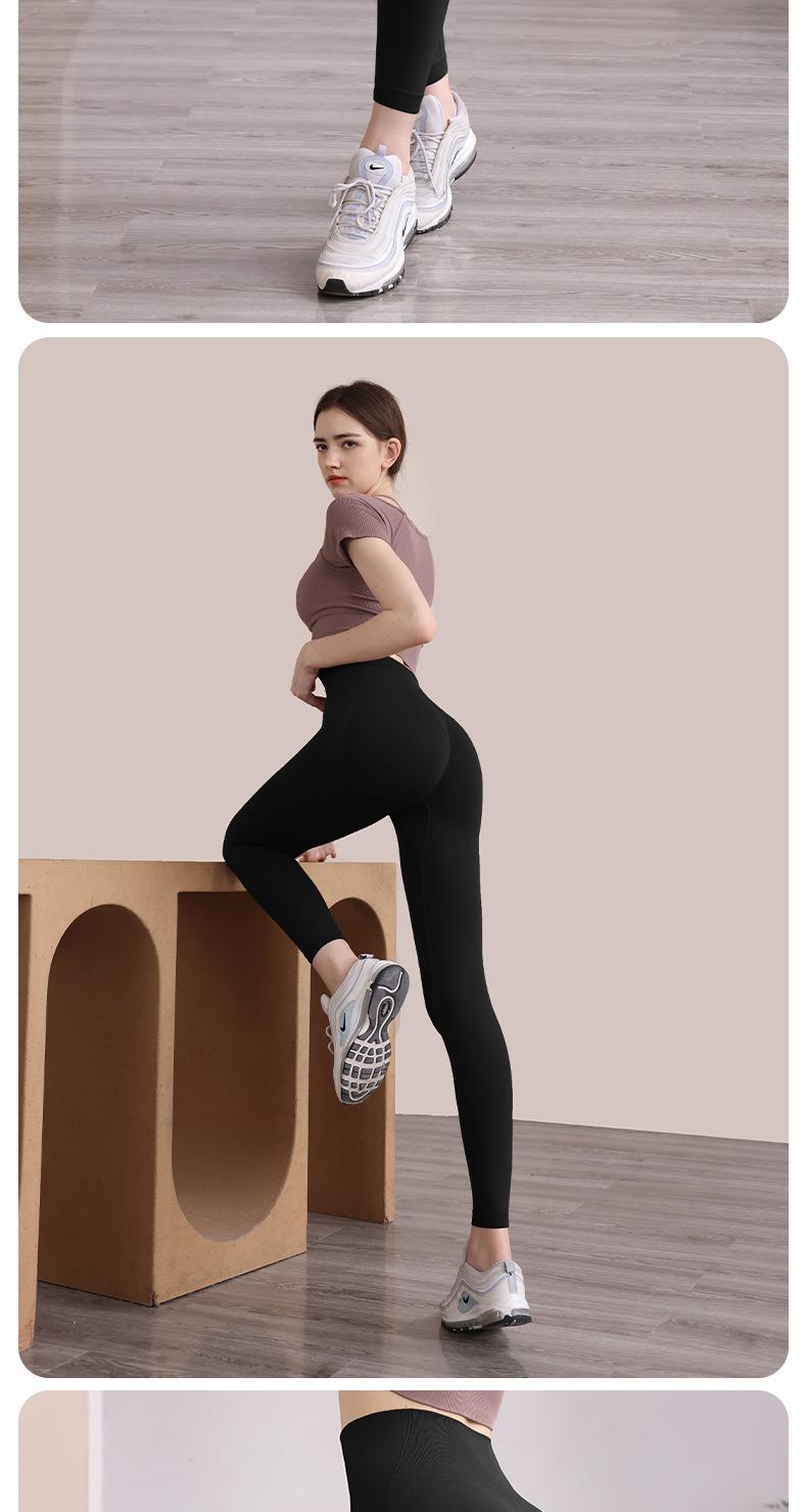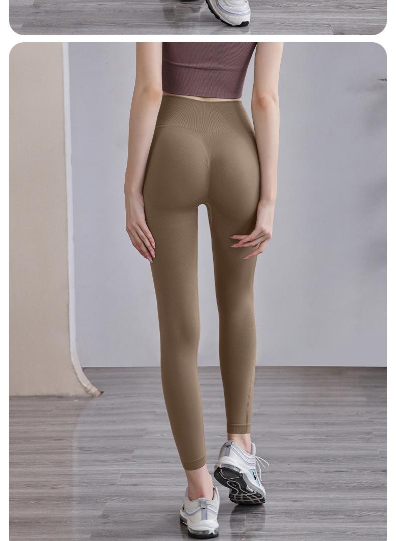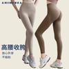 Pantalones de yoga desnudos para mujer, de cintura alta, estilo europeo y americano, color melocotón, para fitness y correr.