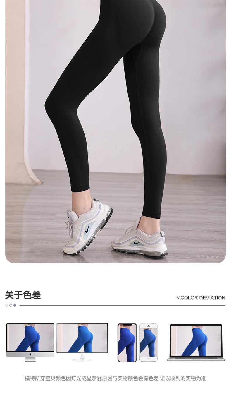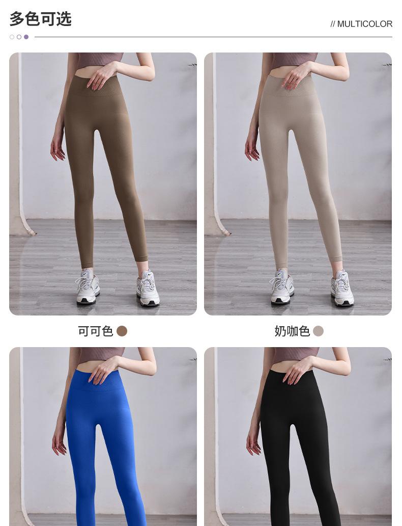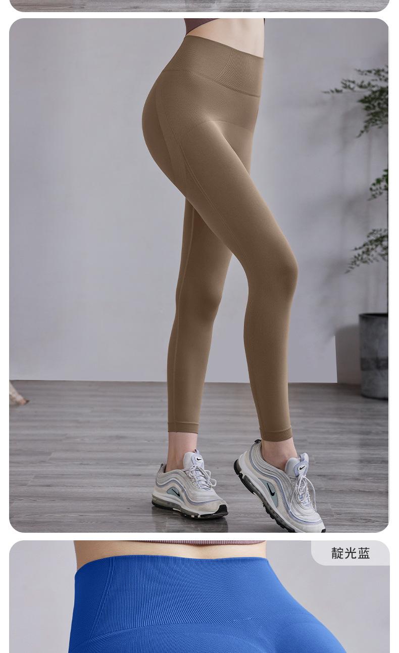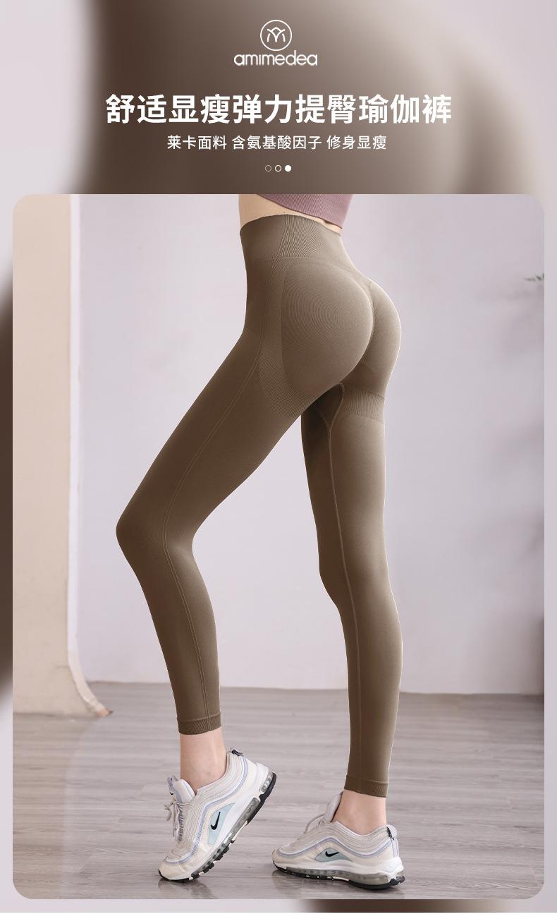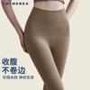 Pantalones de yoga desnudos para mujer, de cintura alta, estilo europeo y americano, color melocotón, para fitness y correr.