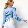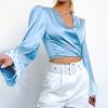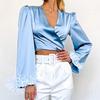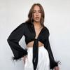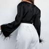Camisa de abrigo de plumas de avestruz de estilo europeo y americano, nueva primavera y verano de 2023, camisa corta de satén de seda de hielo de alta gama a la moda
