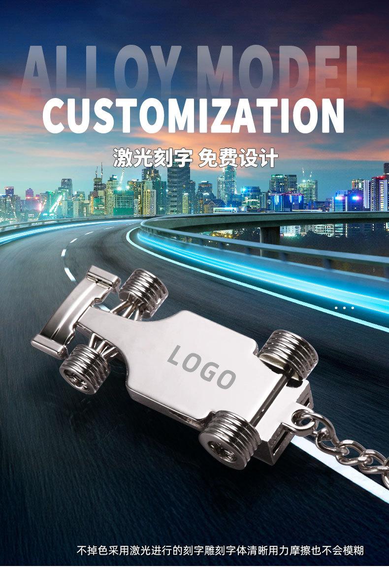 Llavero creativo con forma de coche de carreras de metal, pequeño regalo, accesorios para llaves láser