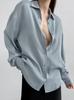 Compra Camisa francesa retro de manga larga con cuello POLO para mujer, holgada, de satén, elegante, informal, otoño e invierno 2023, nueva moda sencilla al por mayor en Joom.pro