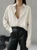 Camisa francesa retro de manga larga con cuello POLO para mujer, holgada, de satén, elegante, informal, otoño e invierno 2023, nueva moda sencilla