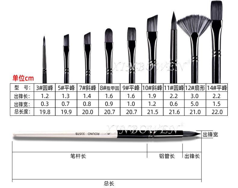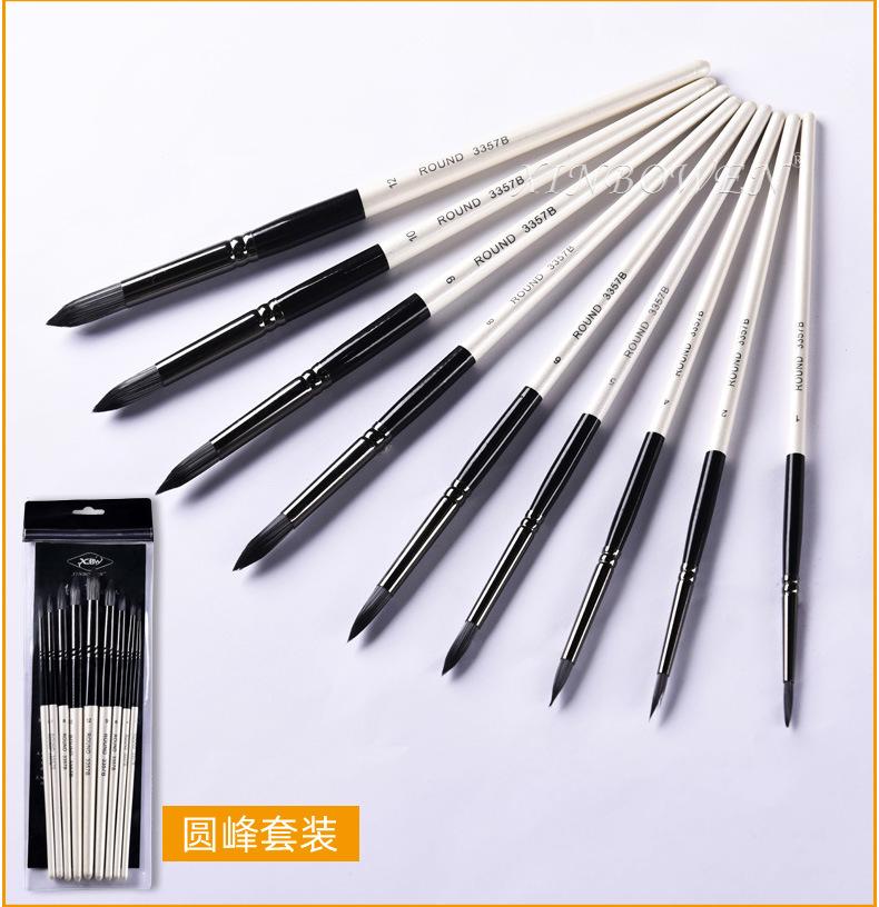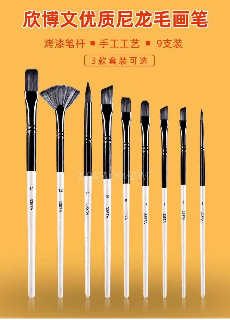 Juego de 9 pinceles de lana de nailon de alta calidad de Cross-border, pinceles de acuarela gouache crudos para pintura al óleo para niños, venta al por mayor